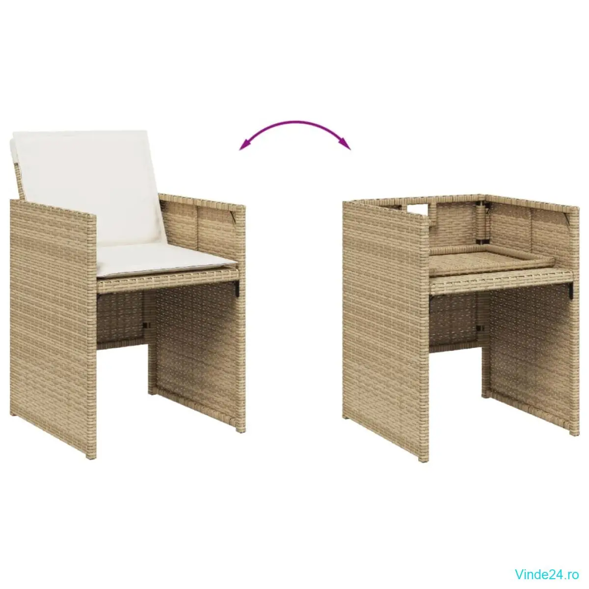 vidaXL Set mobilier de grădină cu perne, 11 piese, bej, poliratan