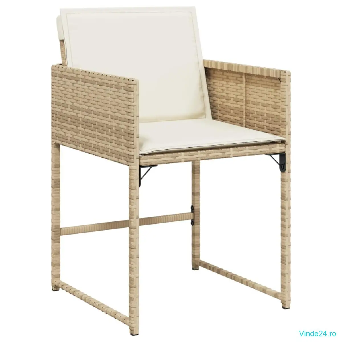 vidaXL Set de masă pentru grădină, 9 piese, cu perne, bej, poliratan