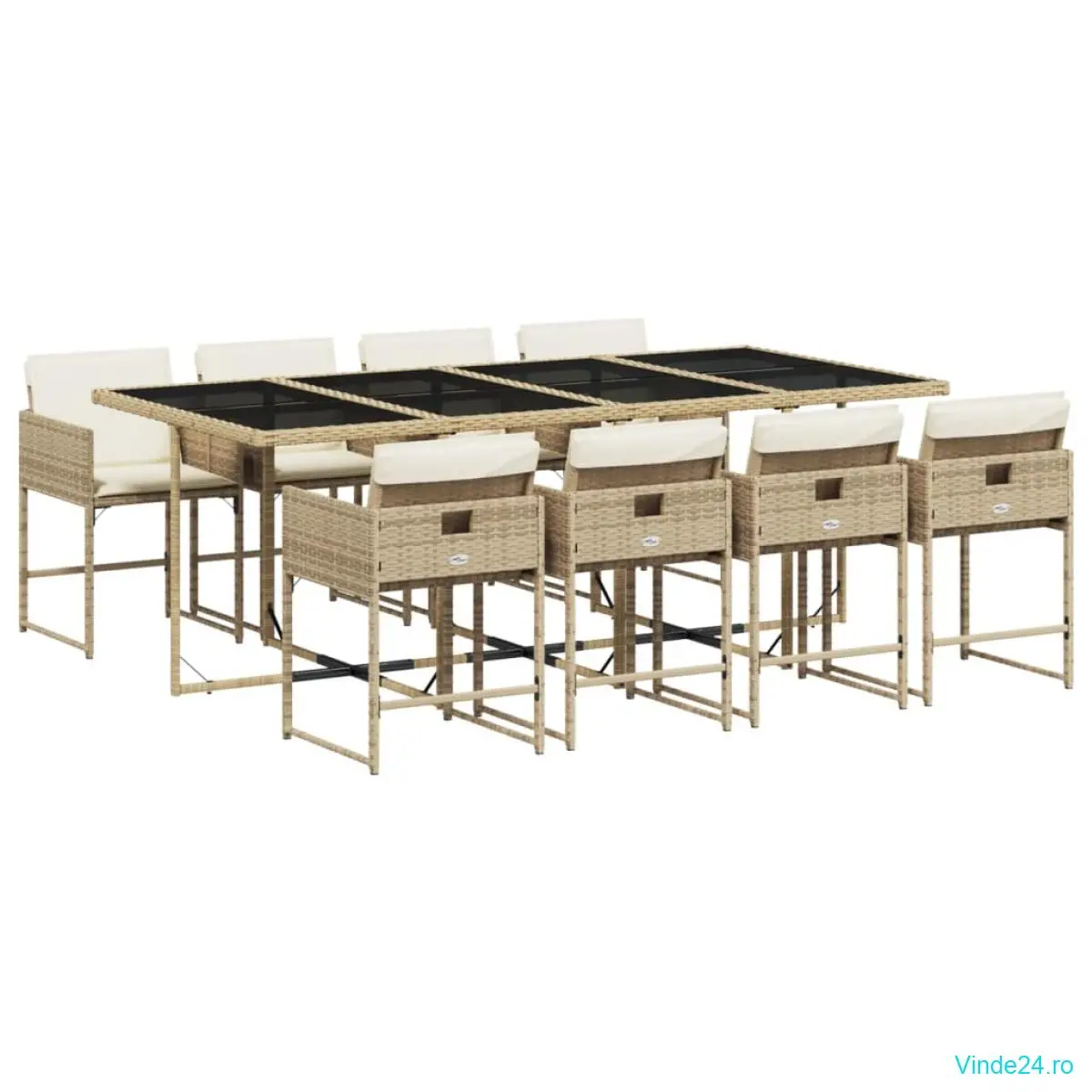 vidaXL Set de masă pentru grădină, 9 piese, cu perne, bej, poliratan