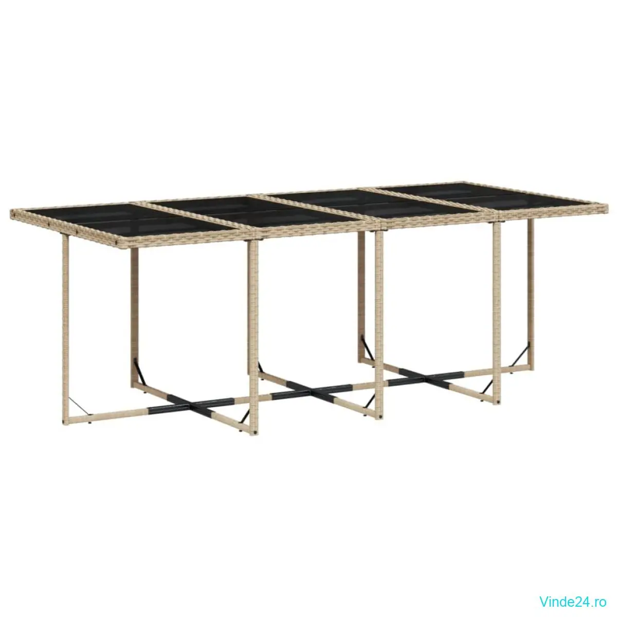 • Blat de masă din sticlă: Blatul mesei de exterior este fabricat din sticlă securizată puternică și durabilă, fiind ușor de curățat cu o cârpă umedă și adăugând o notă de eleganță spațiului dvs. de exterior.