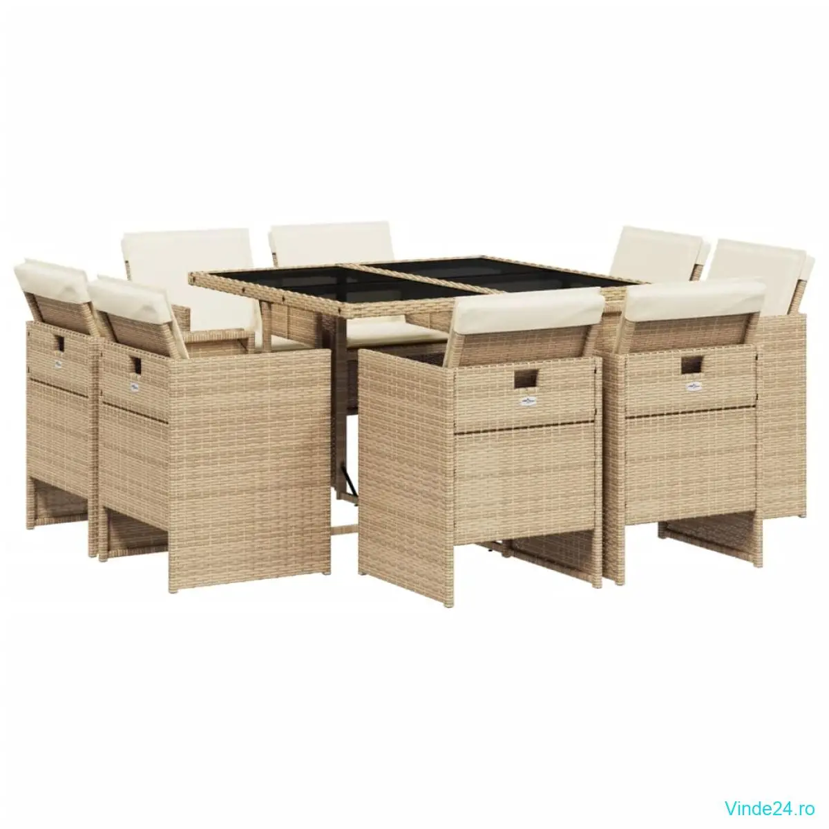 vidaXL Set de masă pentru grădină, 9 piese, cu perne, bej, poliratan