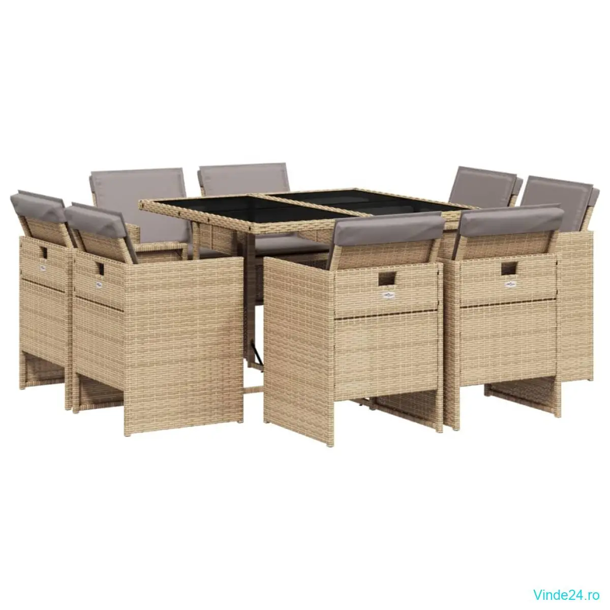 vidaXL Set de masă pentru grădină, 9 piese, cu perne, bej, poliratan