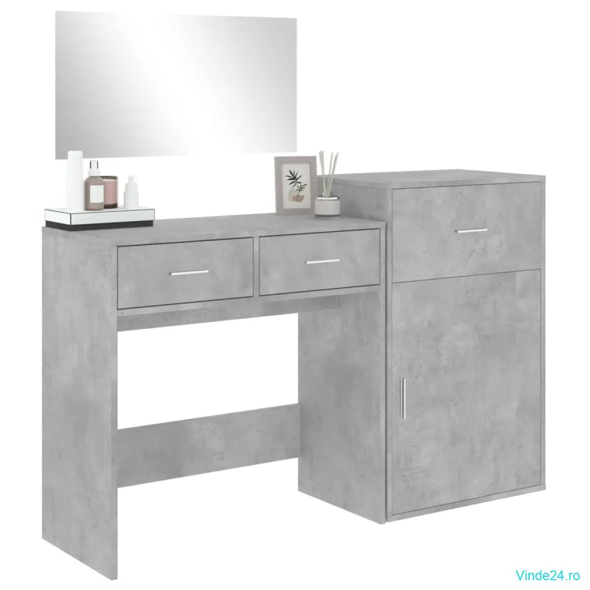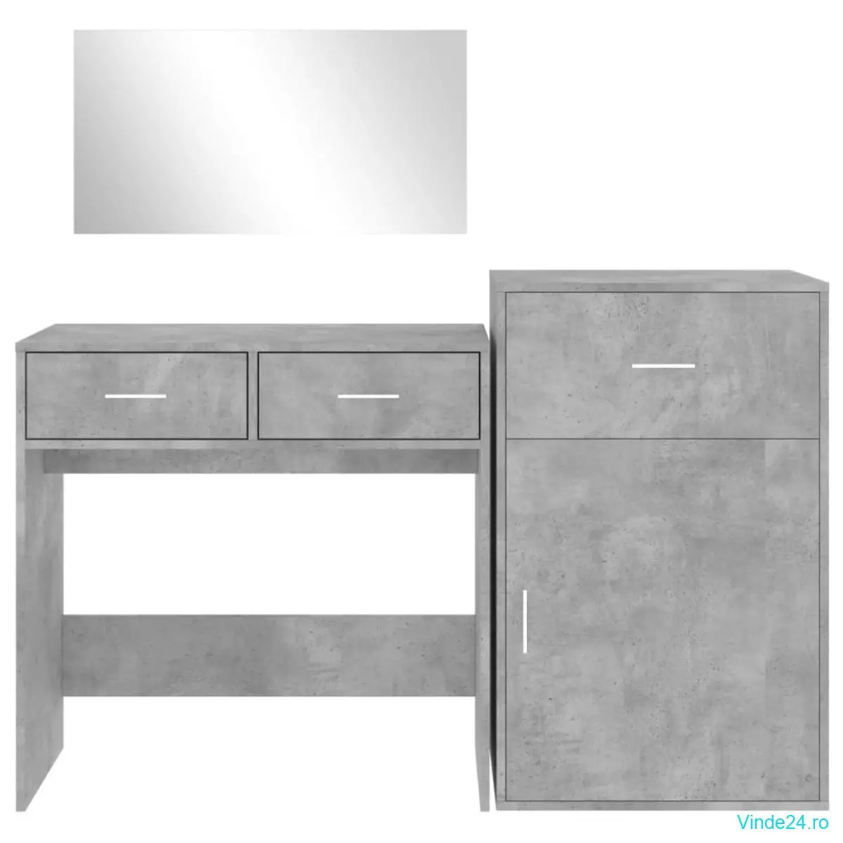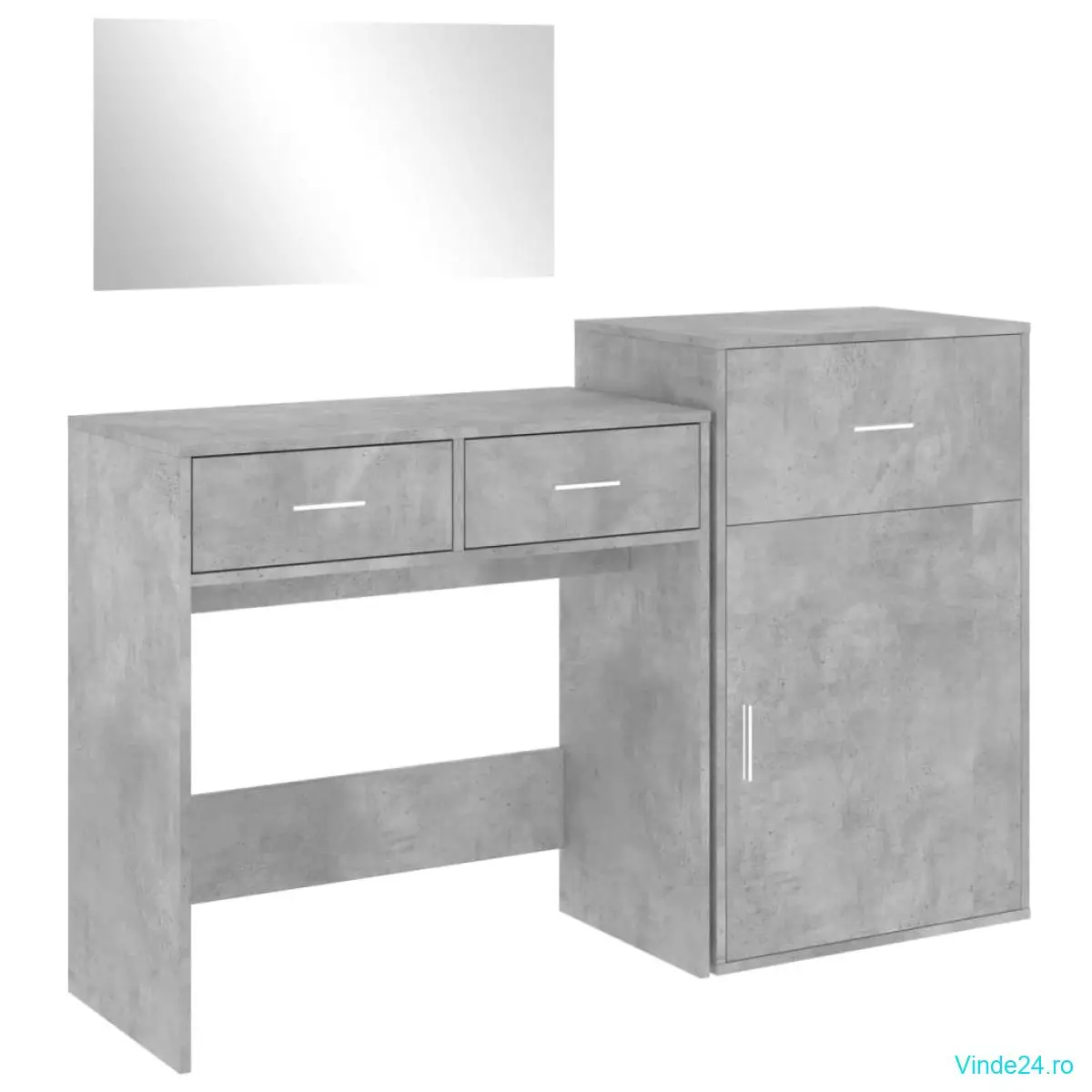 vidaXL Set de măsuță de toaletă, 3 piese, gri beton, lemn prelucrat