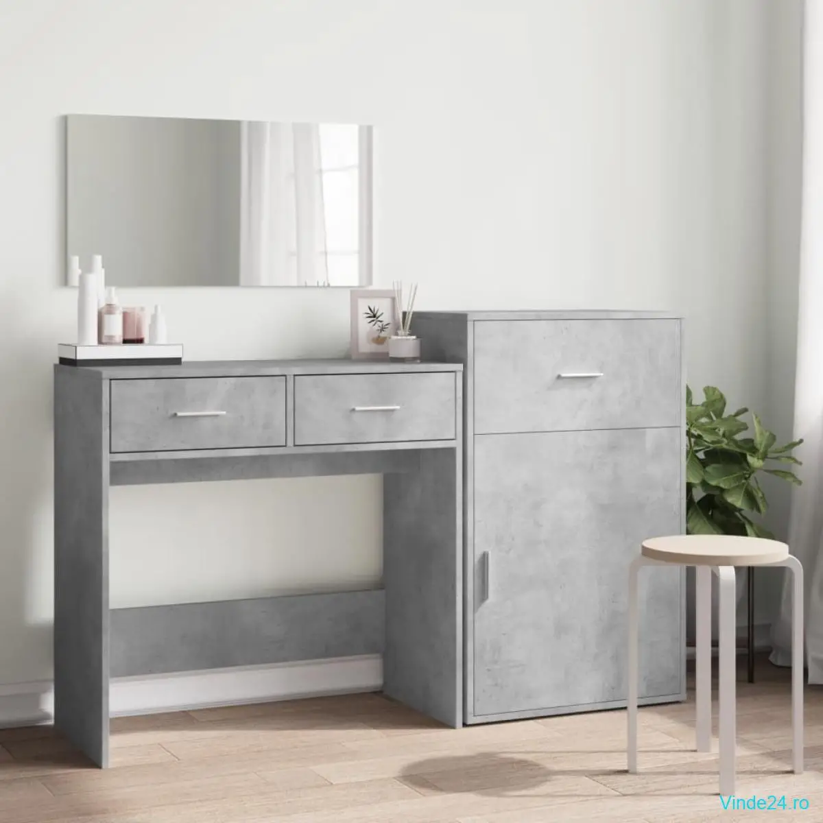 vidaXL Set de măsuță de toaletă, 3 piese, gri beton, lemn prelucrat
