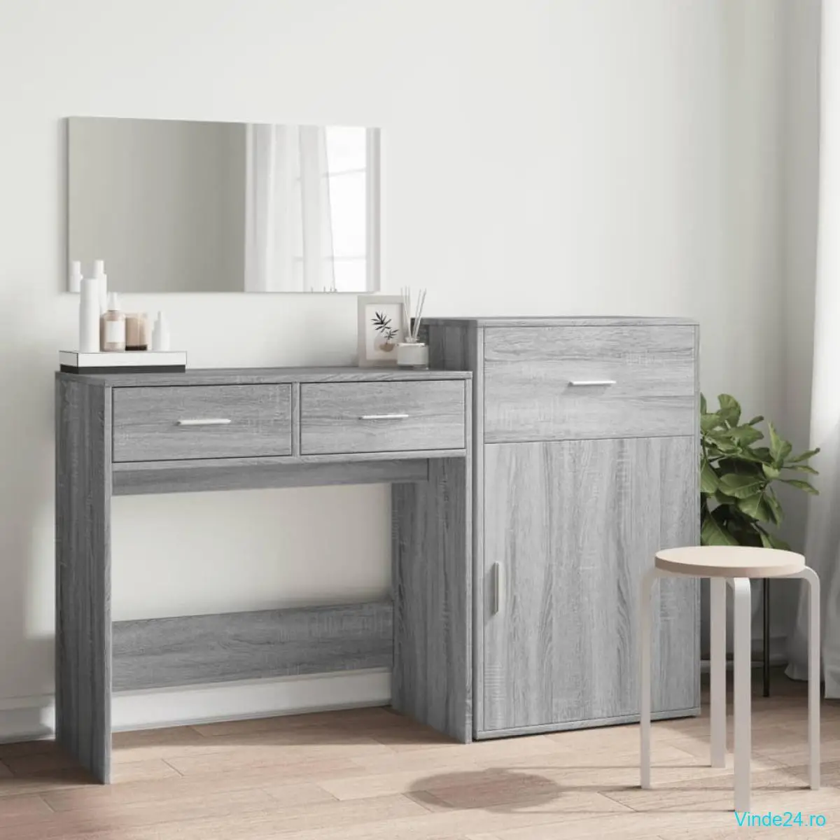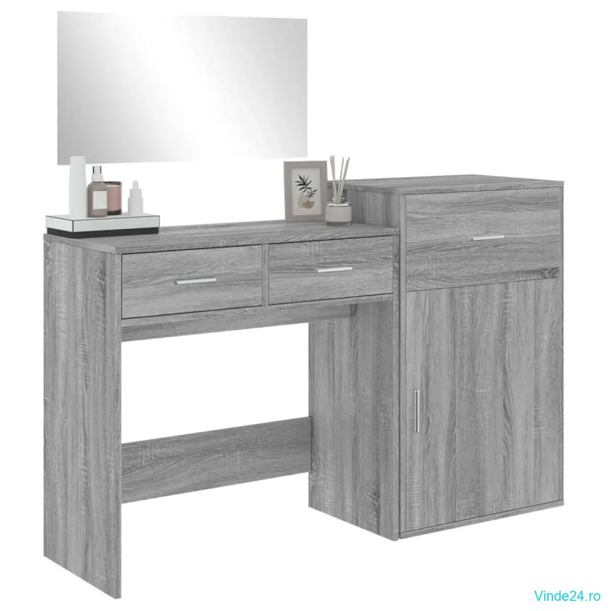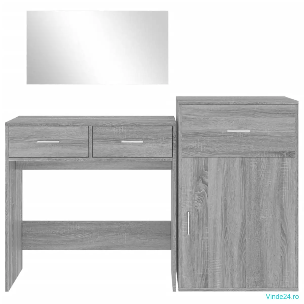vidaXL Set de măsuță de toaletă, 3 piese, gri sonoma, lemn prelucrat