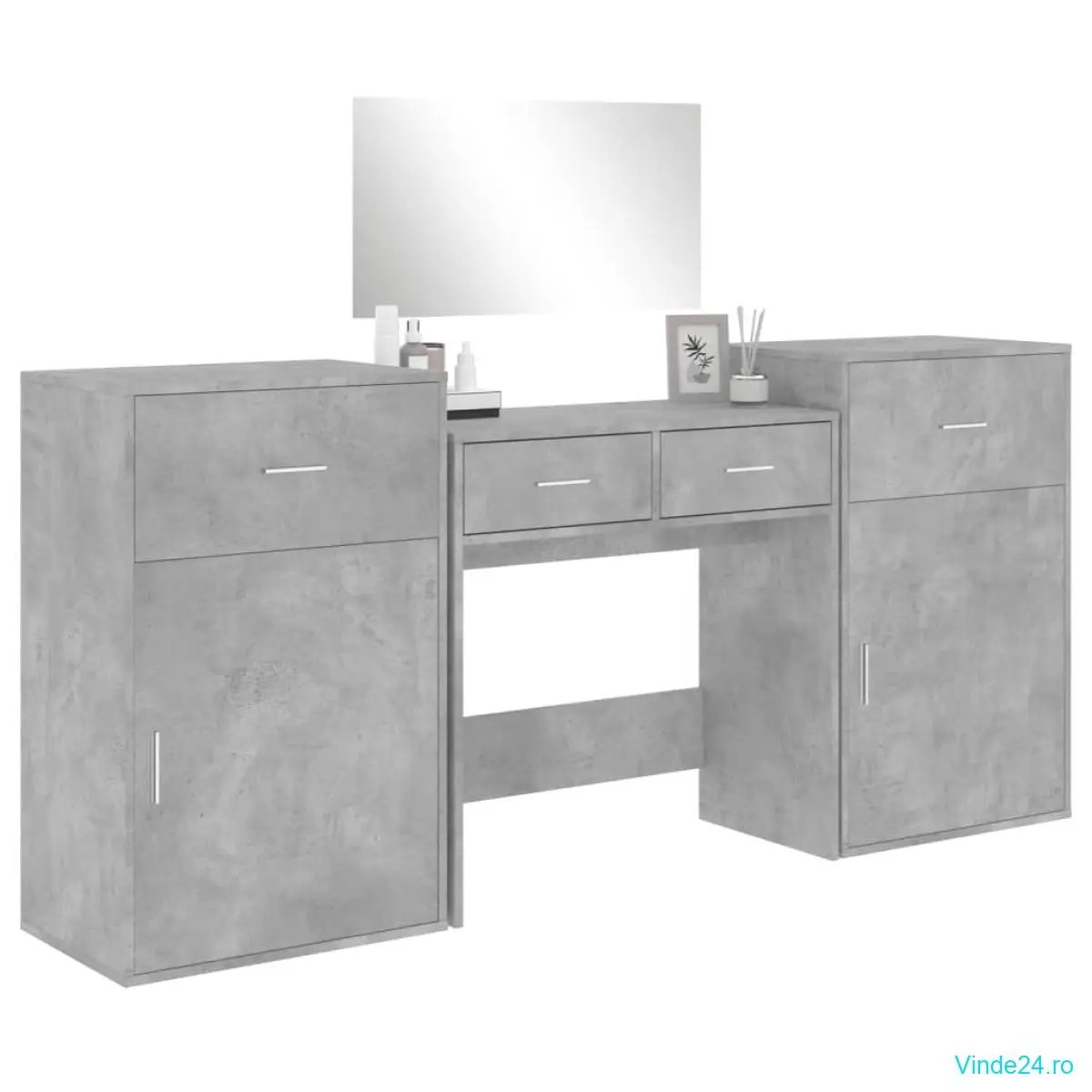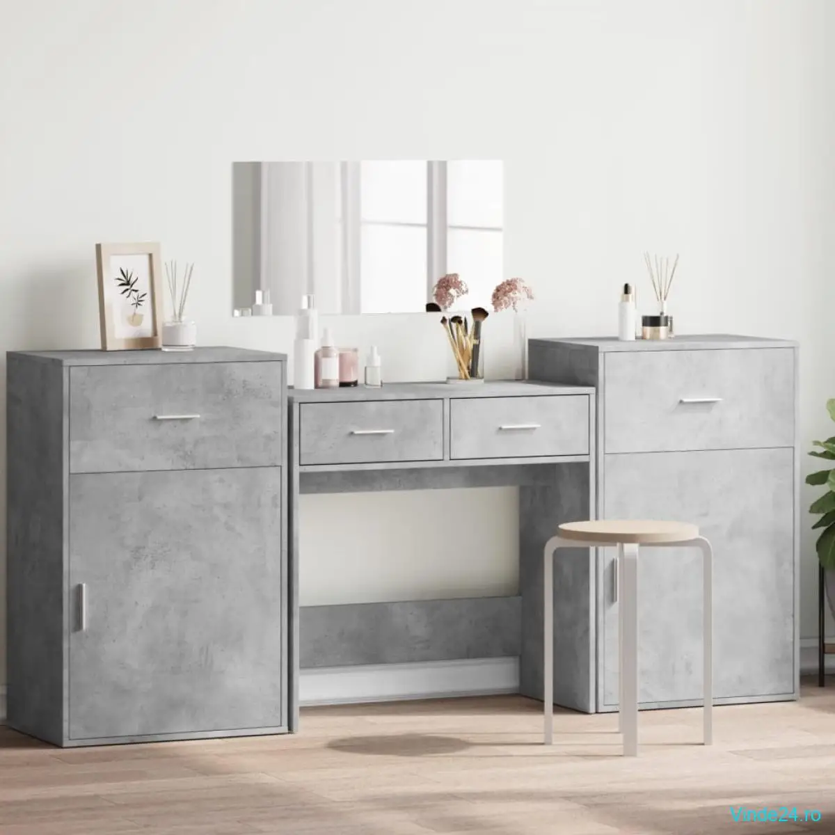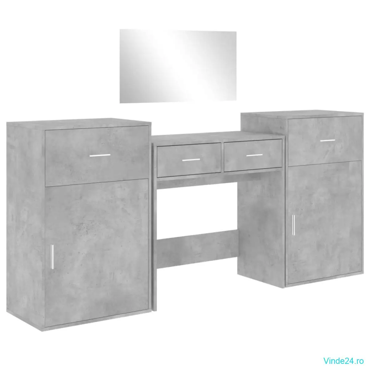 vidaXL Set de măsuță de toaletă, 4 piese, gri beton, lemn prelucrat