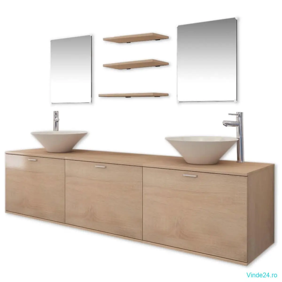 vidaXL Set mobilier baie 10 piese cu chiuvete și robinete incluse, Bej