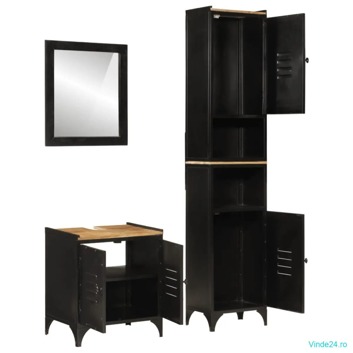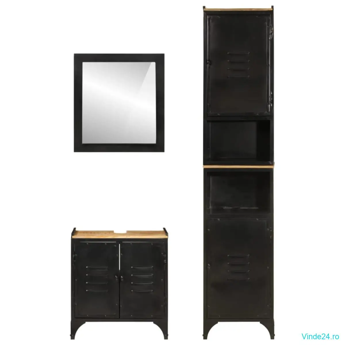 vidaXL Set mobilier de baie, 3 piese, fier și lemn masiv de mango