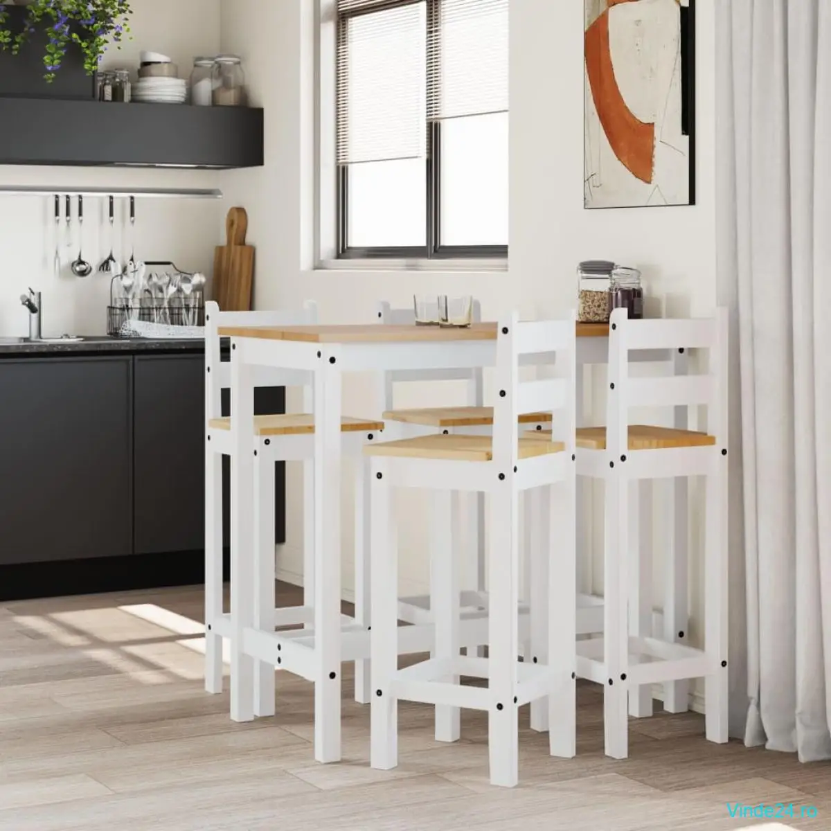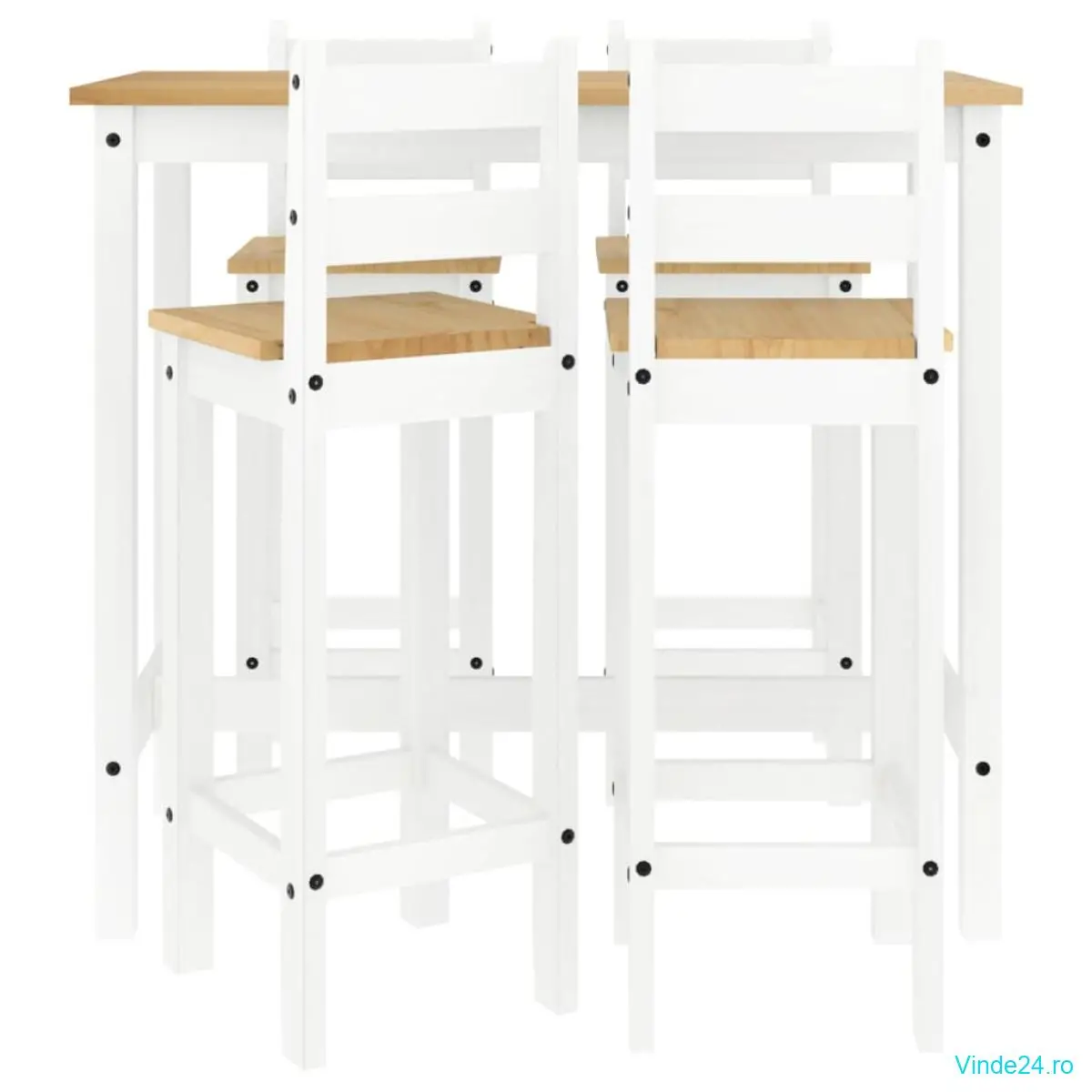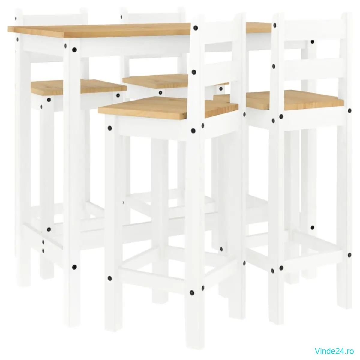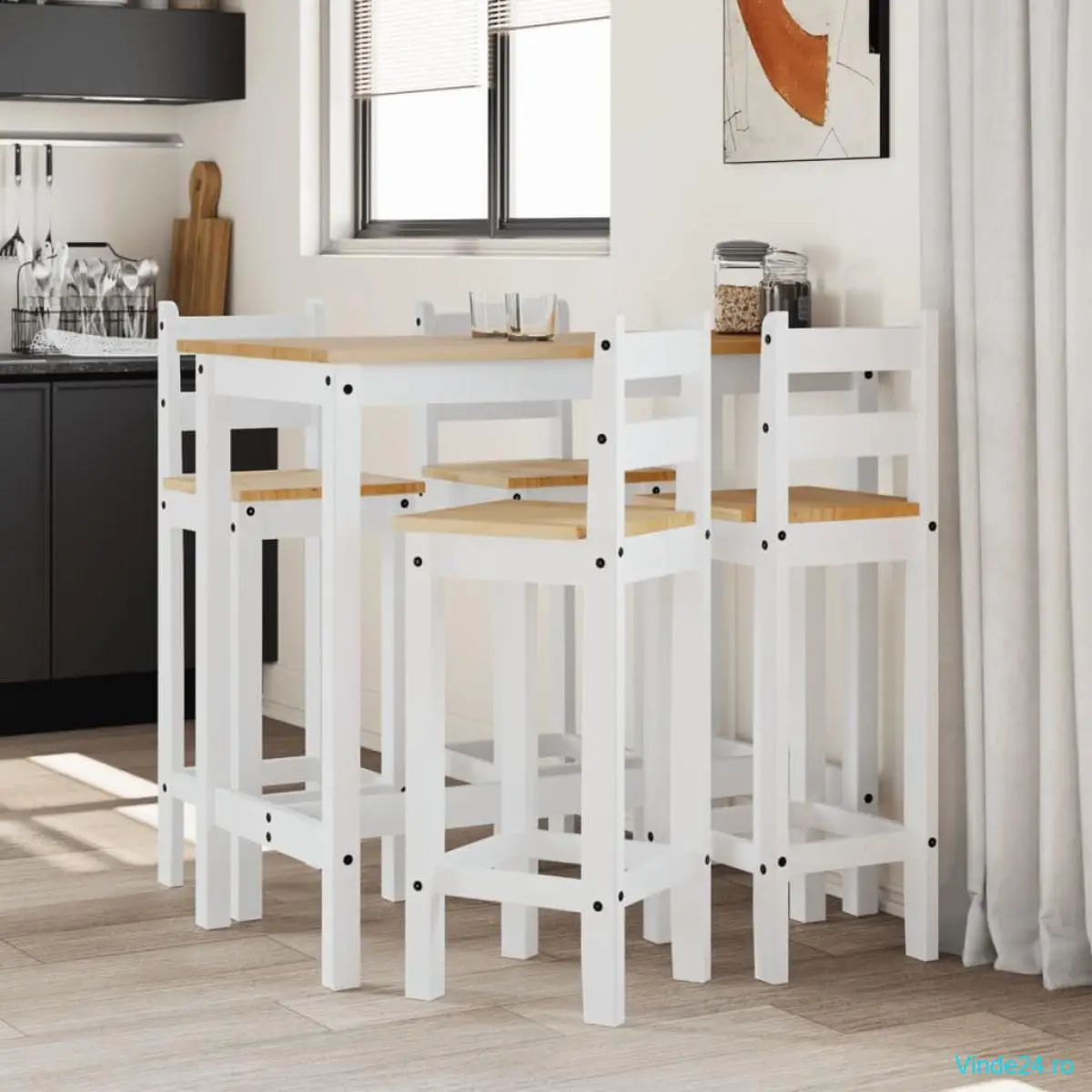 - Lemn masiv de pin: Acest set de bar este realizat din lemn masiv de pin. Lemnul masiv de pin este un material natural frumos. Lemnul de pin are o granulație plană, iar nodurile conferă materialului unicitate și un aspect rustic.