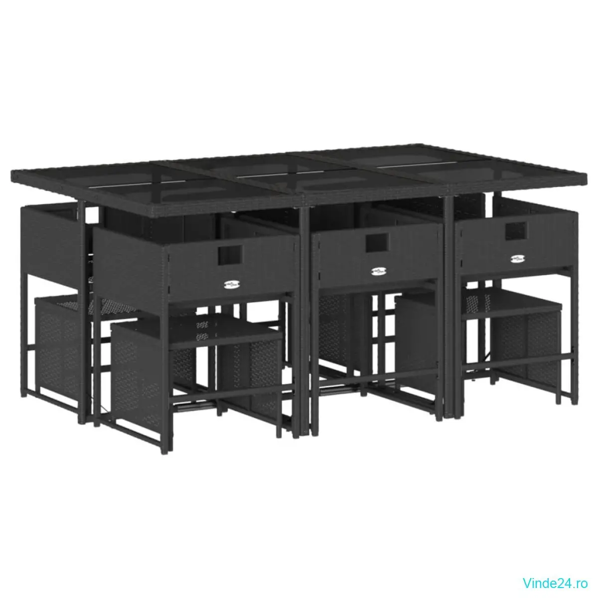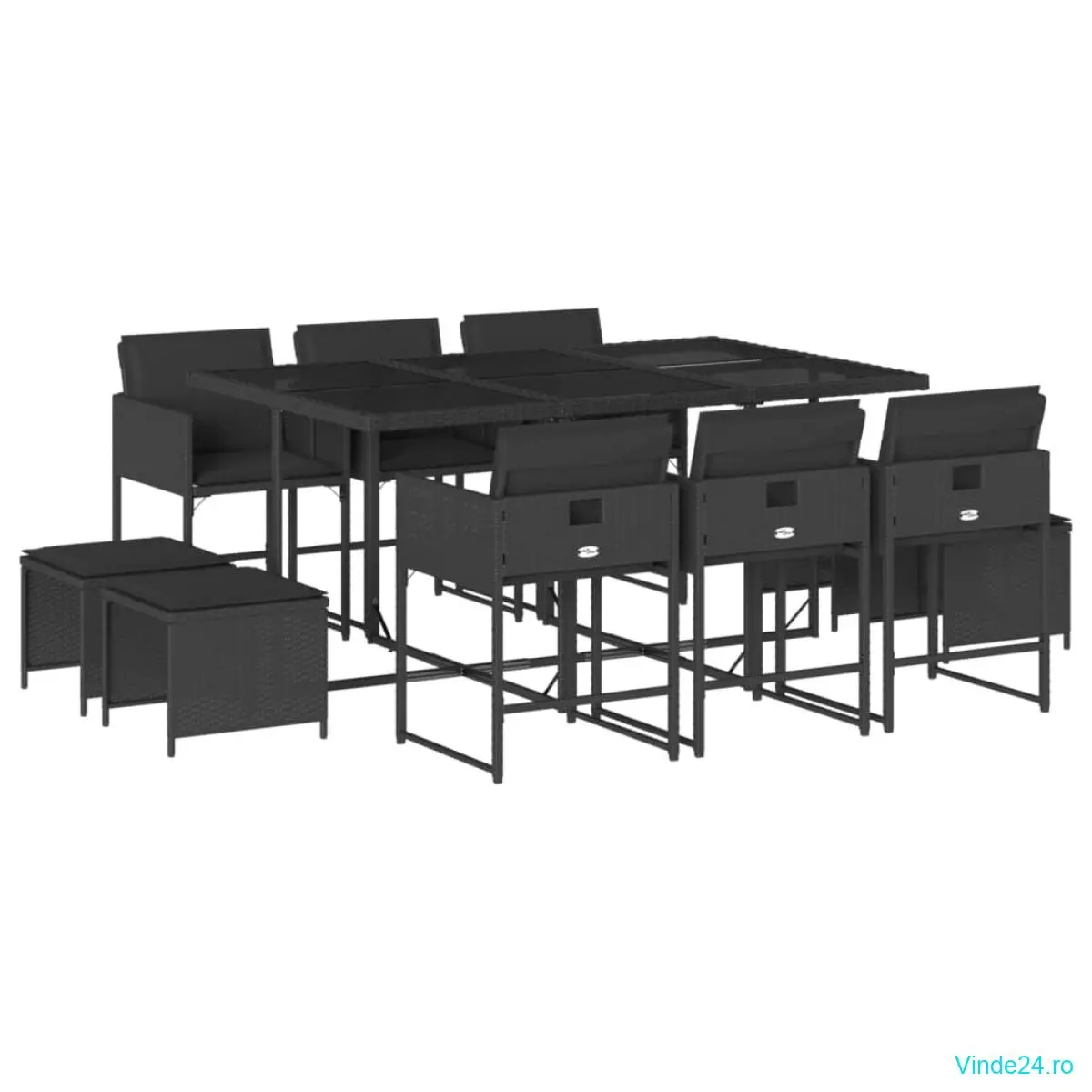 vidaXL Set mobilier de exterior cu perne, 11 piese, negru, poliratan