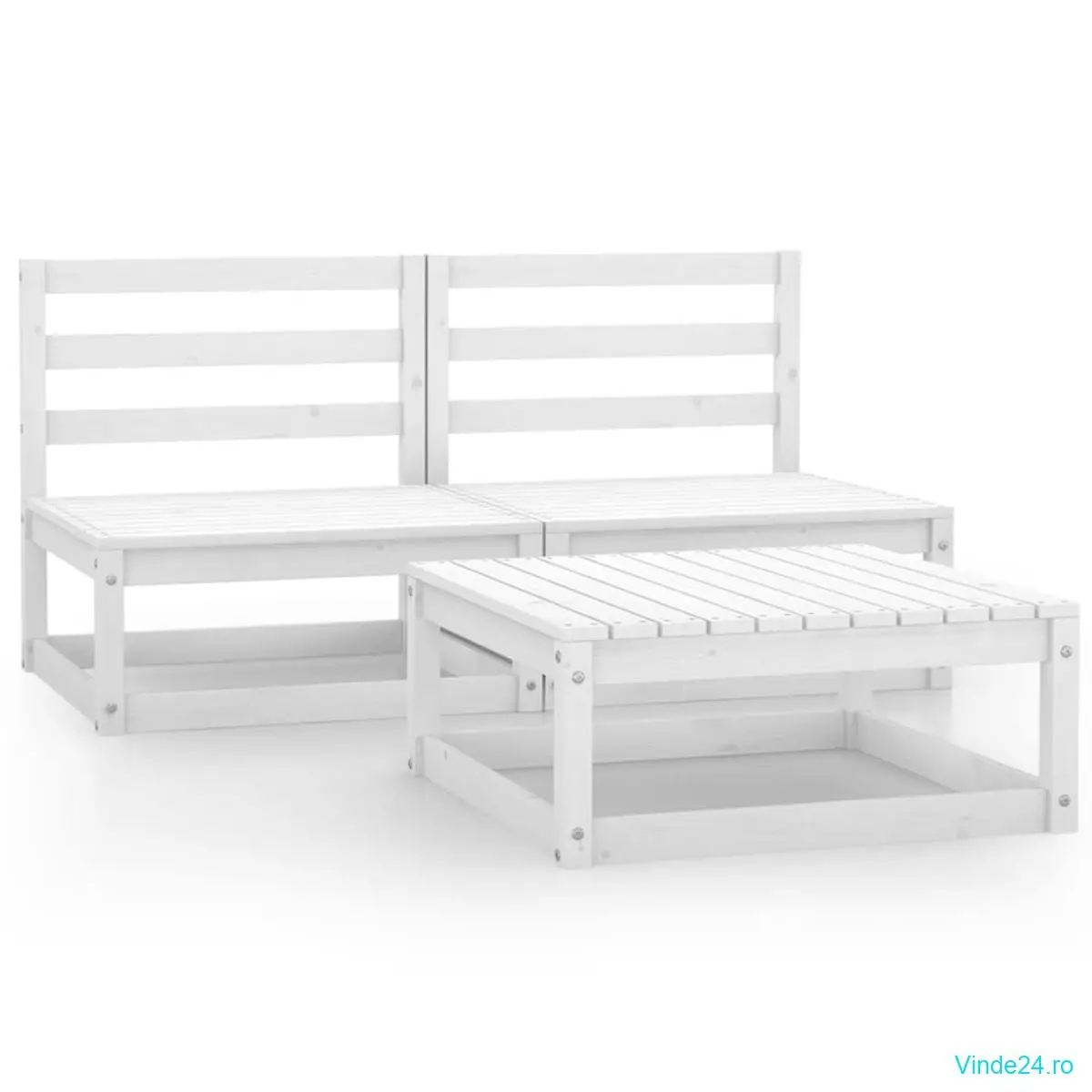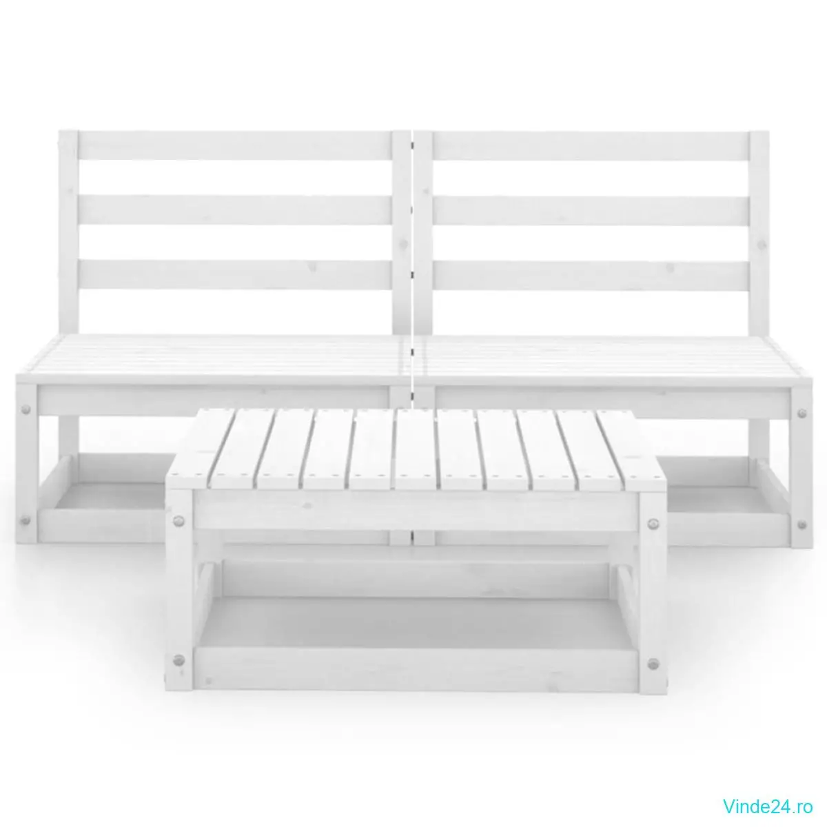 vidaXL Set mobilier de grădină, 3 piese, alb, lemn masiv de pin