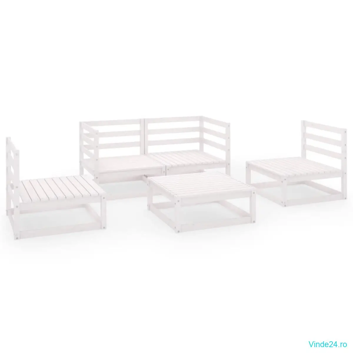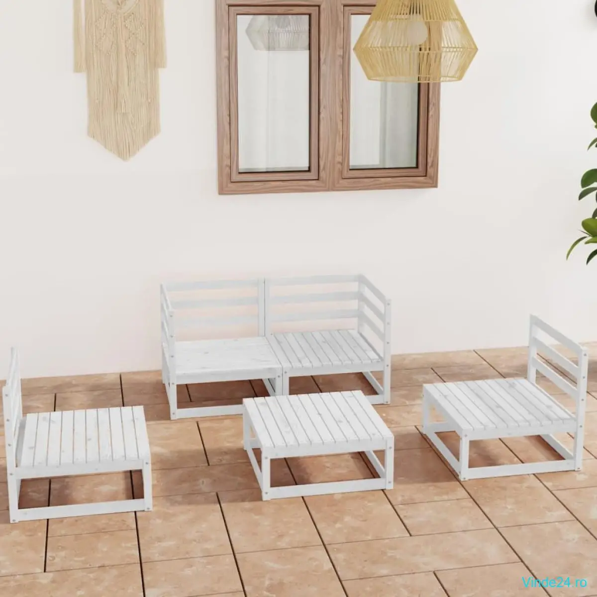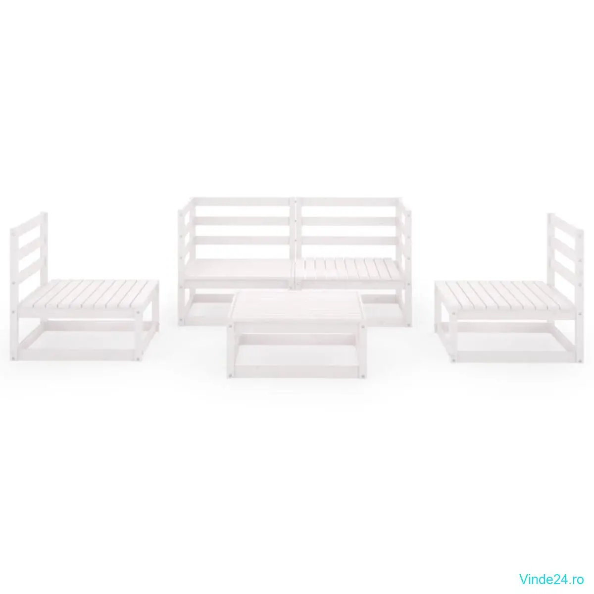 vidaXL Set mobilier de grădină, 5 piese, alb, lemn masiv de pin