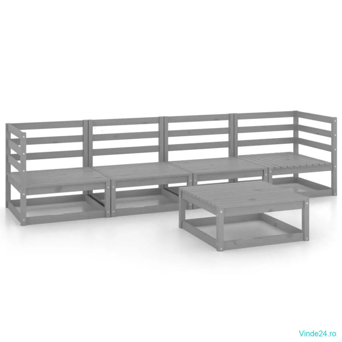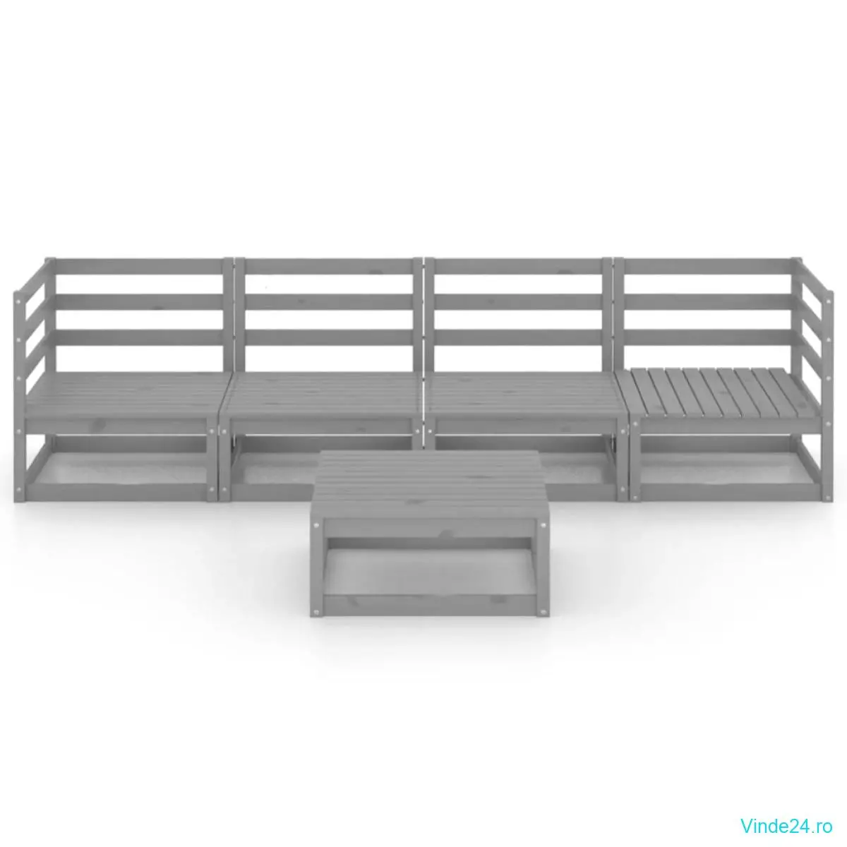 vidaXL Set mobilier de grădină, 5 piese, gri, lemn masiv de pin