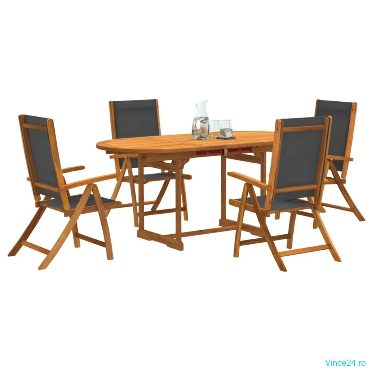 vidaXL Set mobilier de grădină, 5 piese, lemn masiv acacia/textilenă