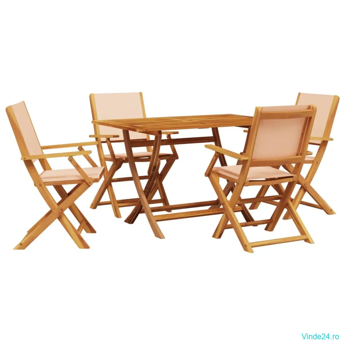 vidaXL Set mobilier de grădină 5 piese textil bej/lemn masiv