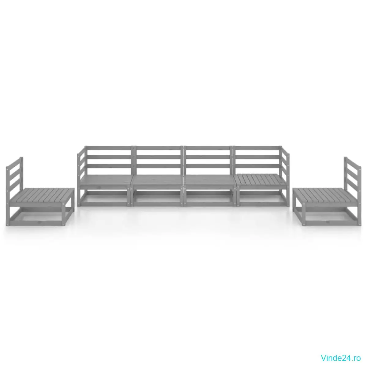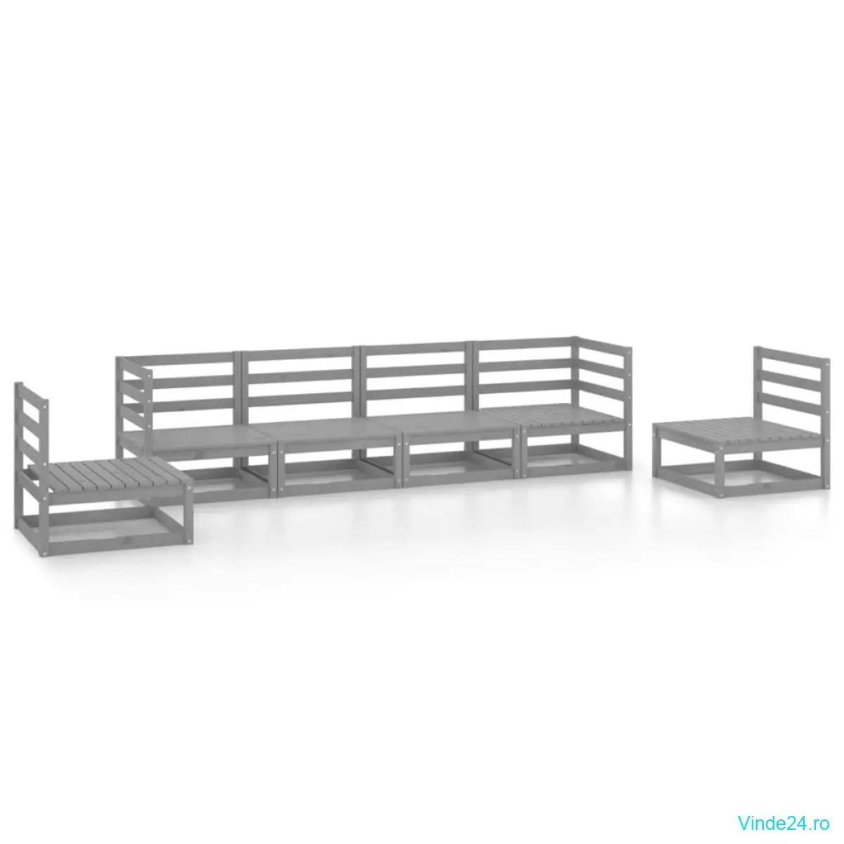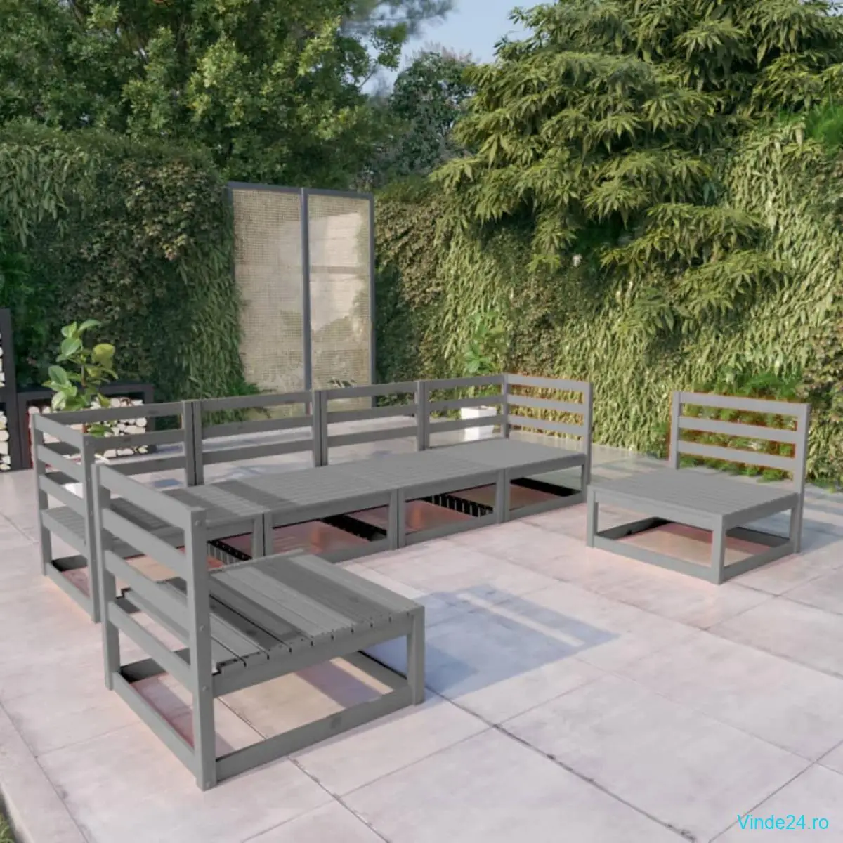 vidaXL Set mobilier de grădină, 6 piese, gri, lemn masiv de pin