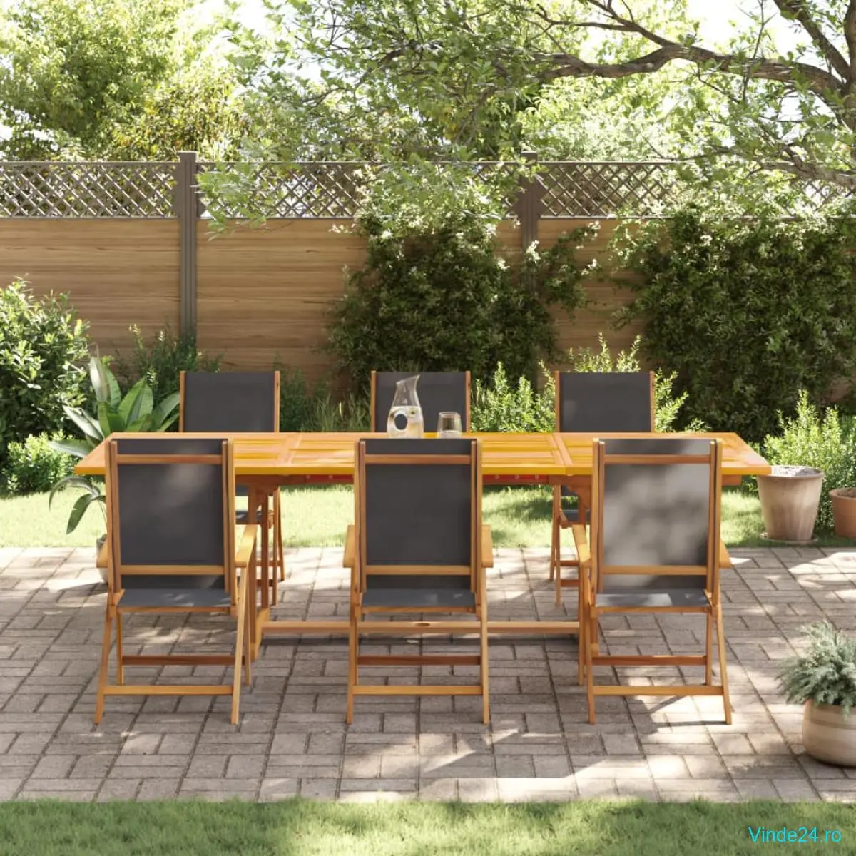 vidaXL Set mobilier de grădină, 7 piese, lemn masiv acacia/textilenă