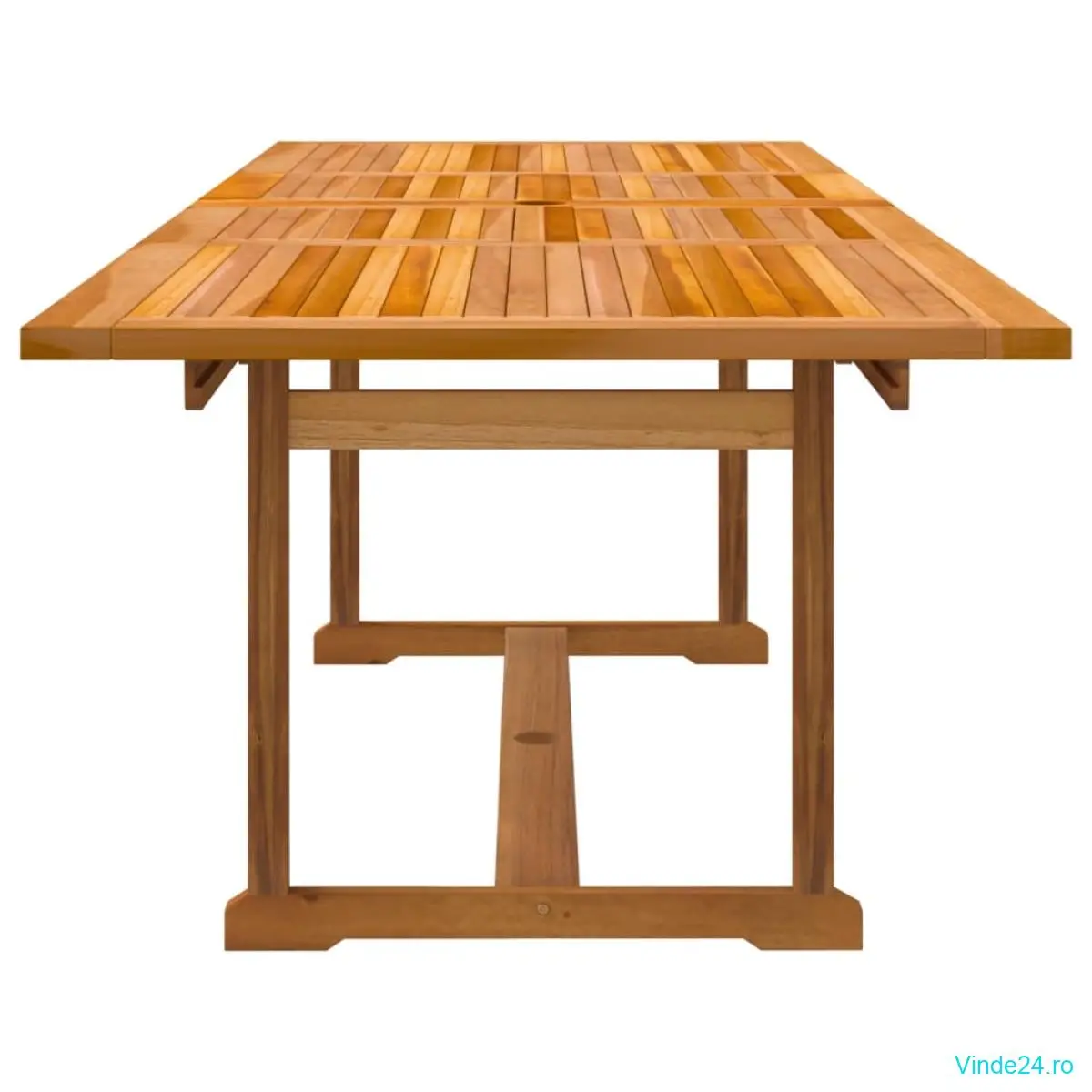 • Lemn masiv de acacia: Setul de mobilier pentru exterior este realizat din lemn masiv de acacia. Lemnul masiv de acacia este un material natural frumos. Lemnul de acacia este un lemn tropical de esență tare, dens, robust și durabil.