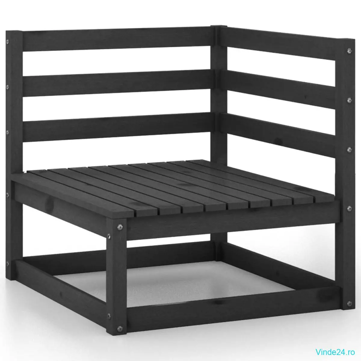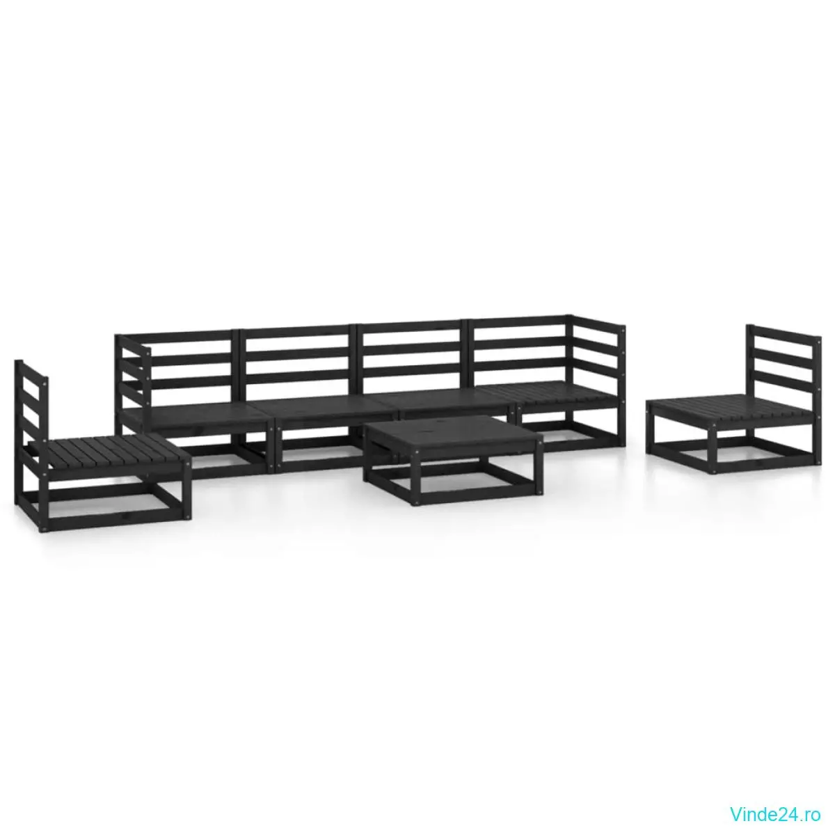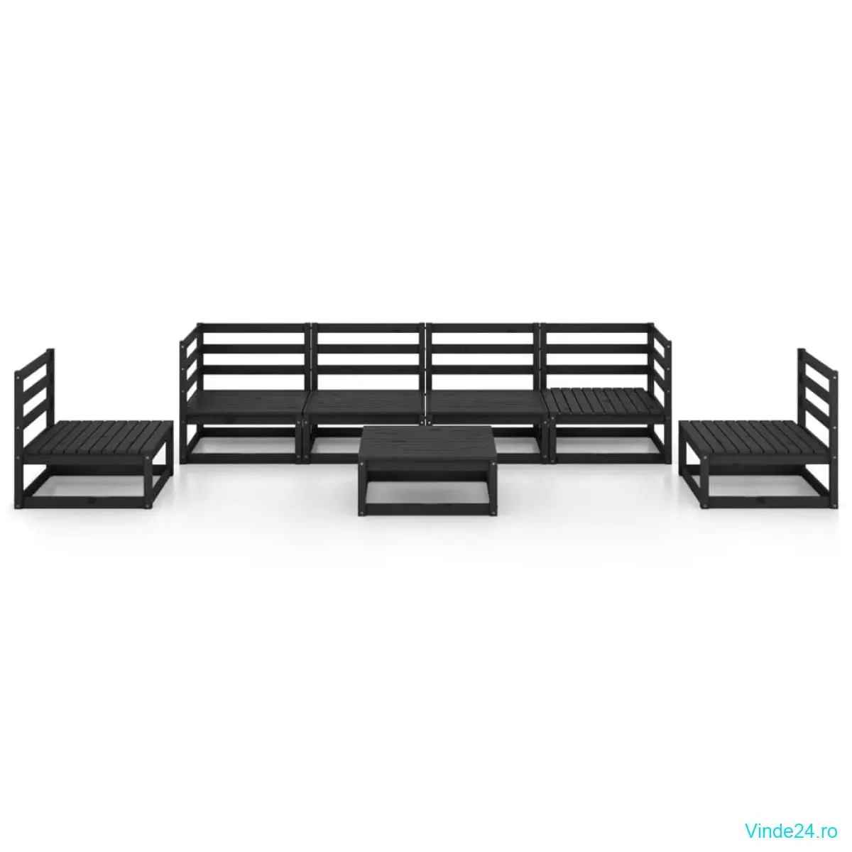vidaXL Set mobilier de grădină, 7 piese, negru, lemn masiv de pin