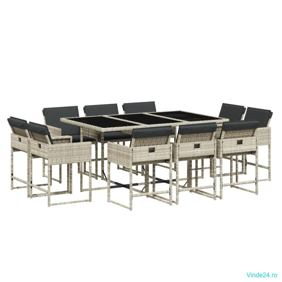 vidaXL Set mobilier de grădină cu perne 11 piese gri deschis poliratan