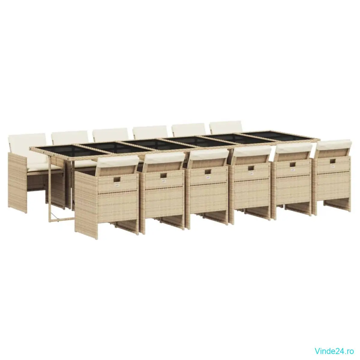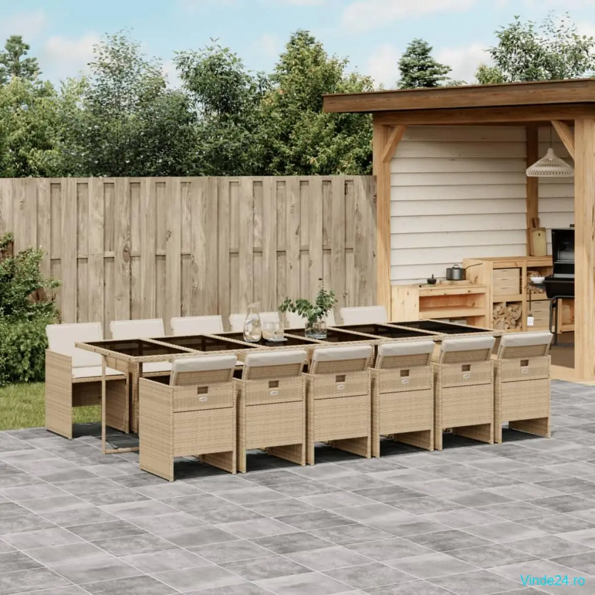 vidaXL Set mobilier de grădină cu perne, 13 piese, bej, poliratan