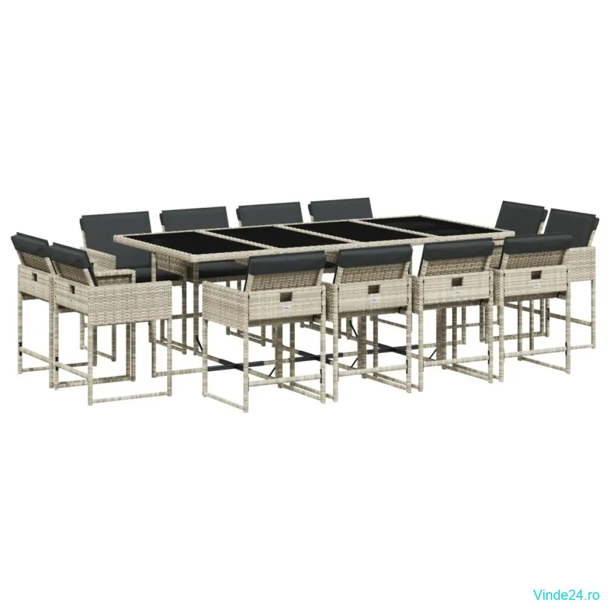 vidaXL Set mobilier de grădină cu perne 13 piese gri deschis poliratan