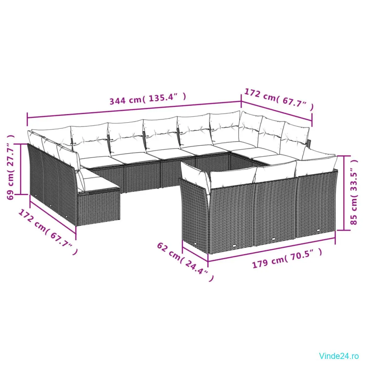 vidaXL Set mobilier de grădină cu perne, 13 piese, gri, poliratan
