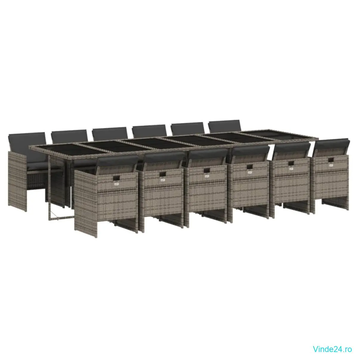 vidaXL Set mobilier de grădină cu perne, 13 piese, gri, poliratan