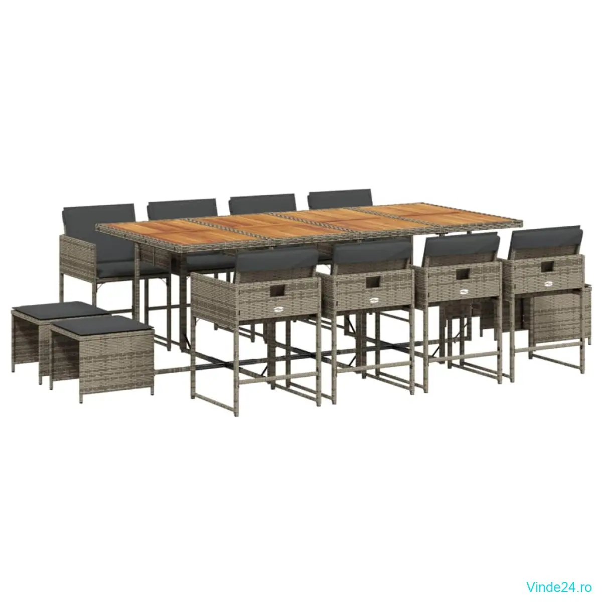vidaXL Set mobilier de grădină cu perne, 13 piese, gri, poliratan