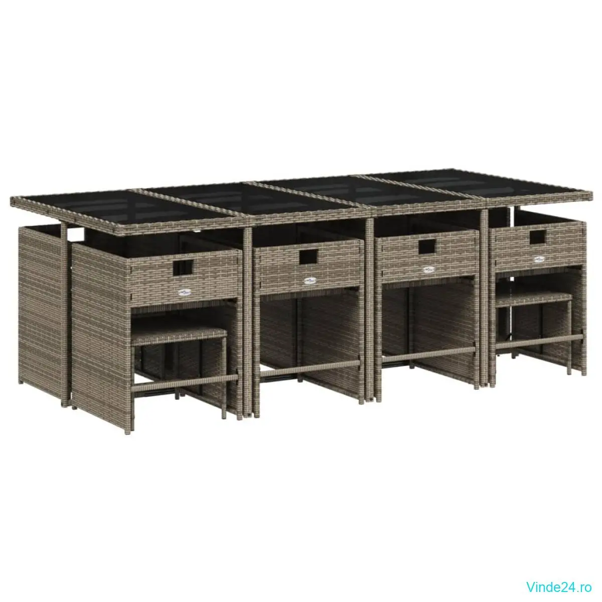 vidaXL Set mobilier de grădină cu perne, 13 piese, gri, poliratan