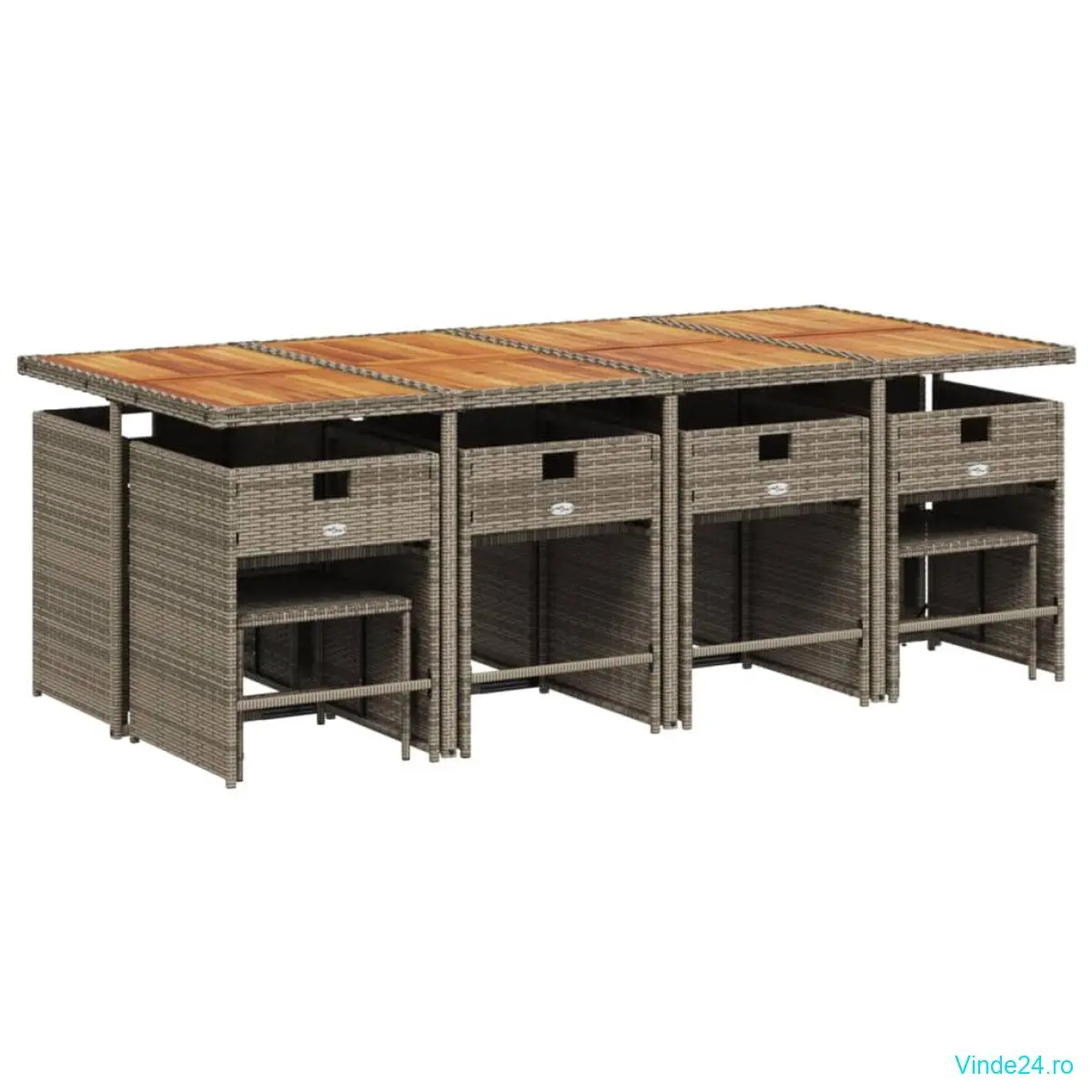 - Material: Ratan PE, oțel vopsit electrostatic, lemn masiv de acacia