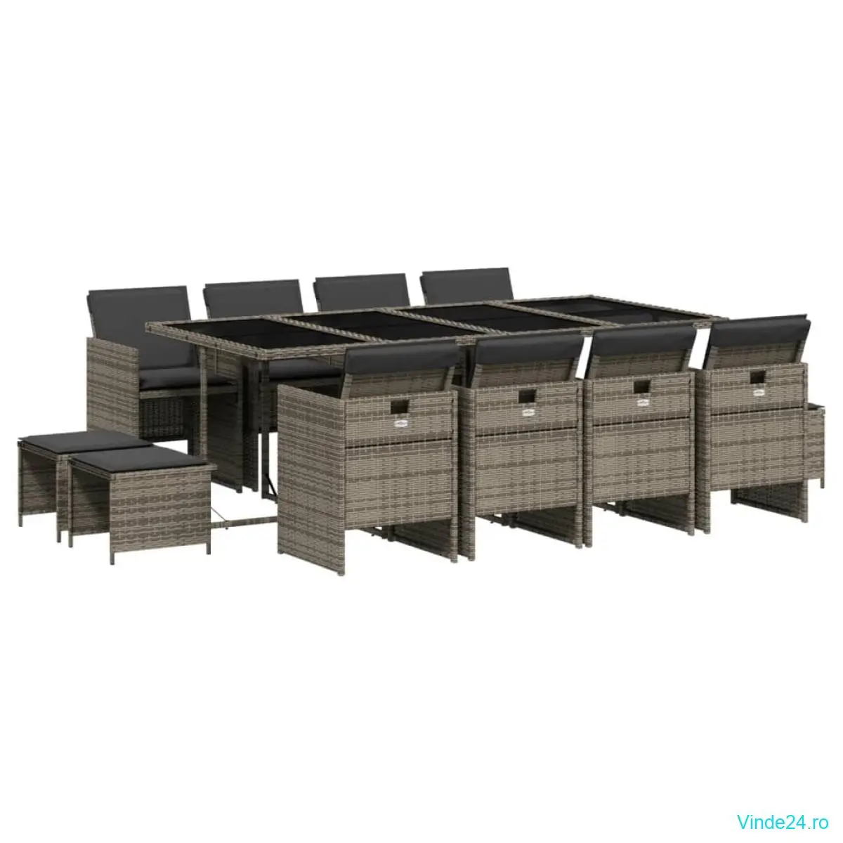 vidaXL Set mobilier de grădină cu perne, 13 piese, gri, poliratan