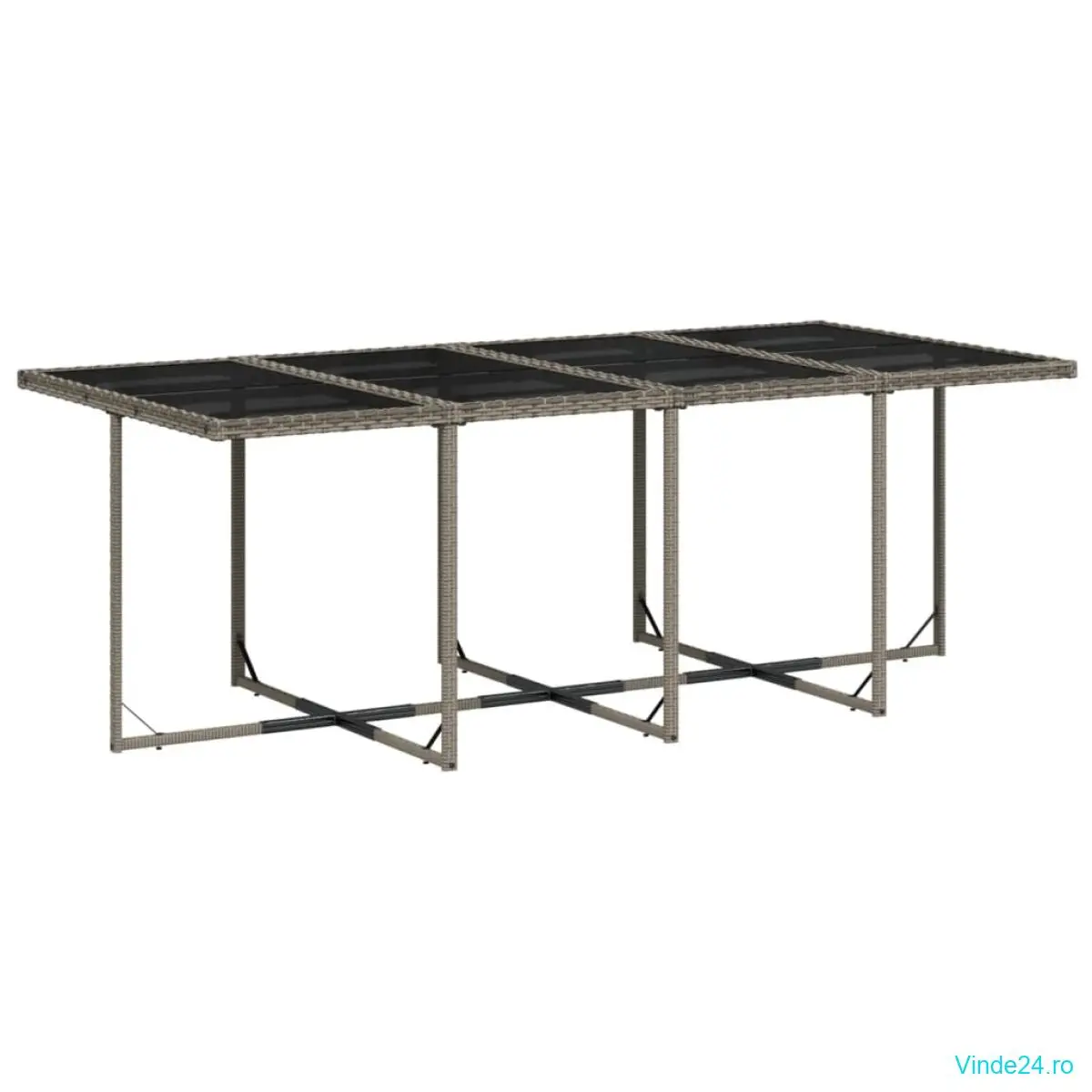 • Blat de masă din sticlă: Blatul mesei de exterior este fabricat din sticlă securizată puternică și durabilă, fiind ușor de curățat cu o cârpă umedă și adăugând o notă de eleganță spațiului dvs. de exterior.