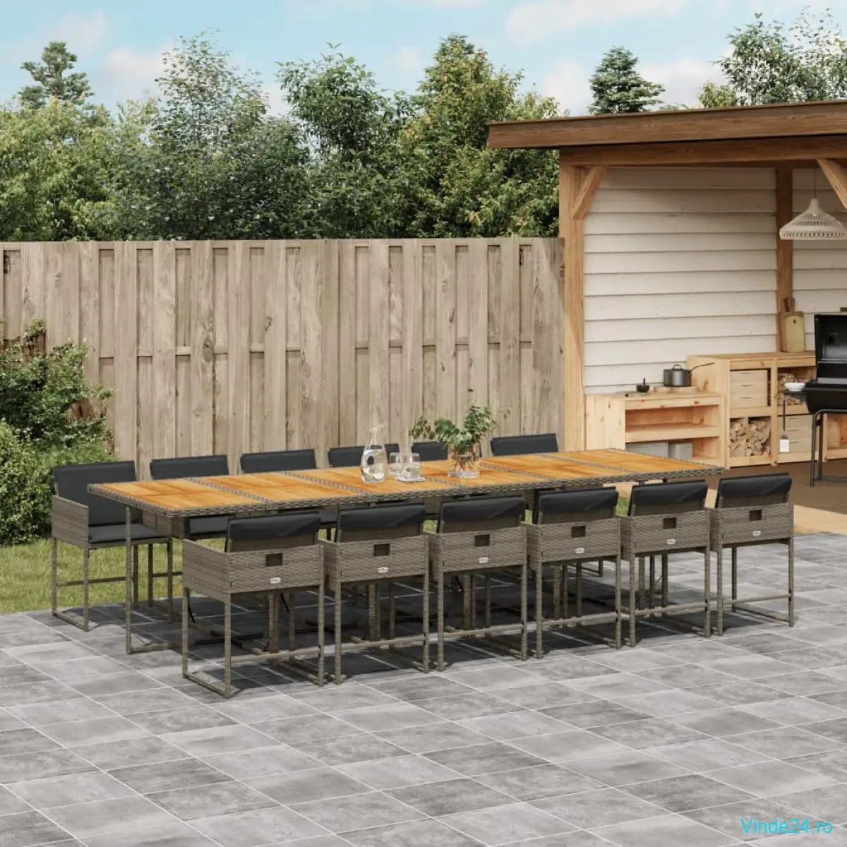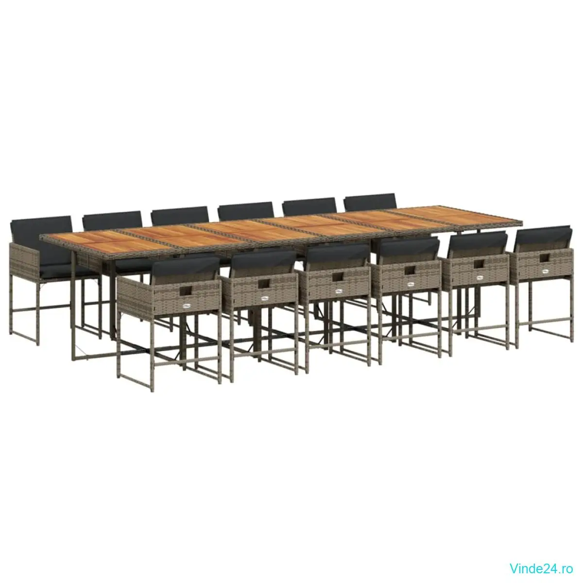 vidaXL Set mobilier de grădină cu perne, 13 piese, gri, poliratan