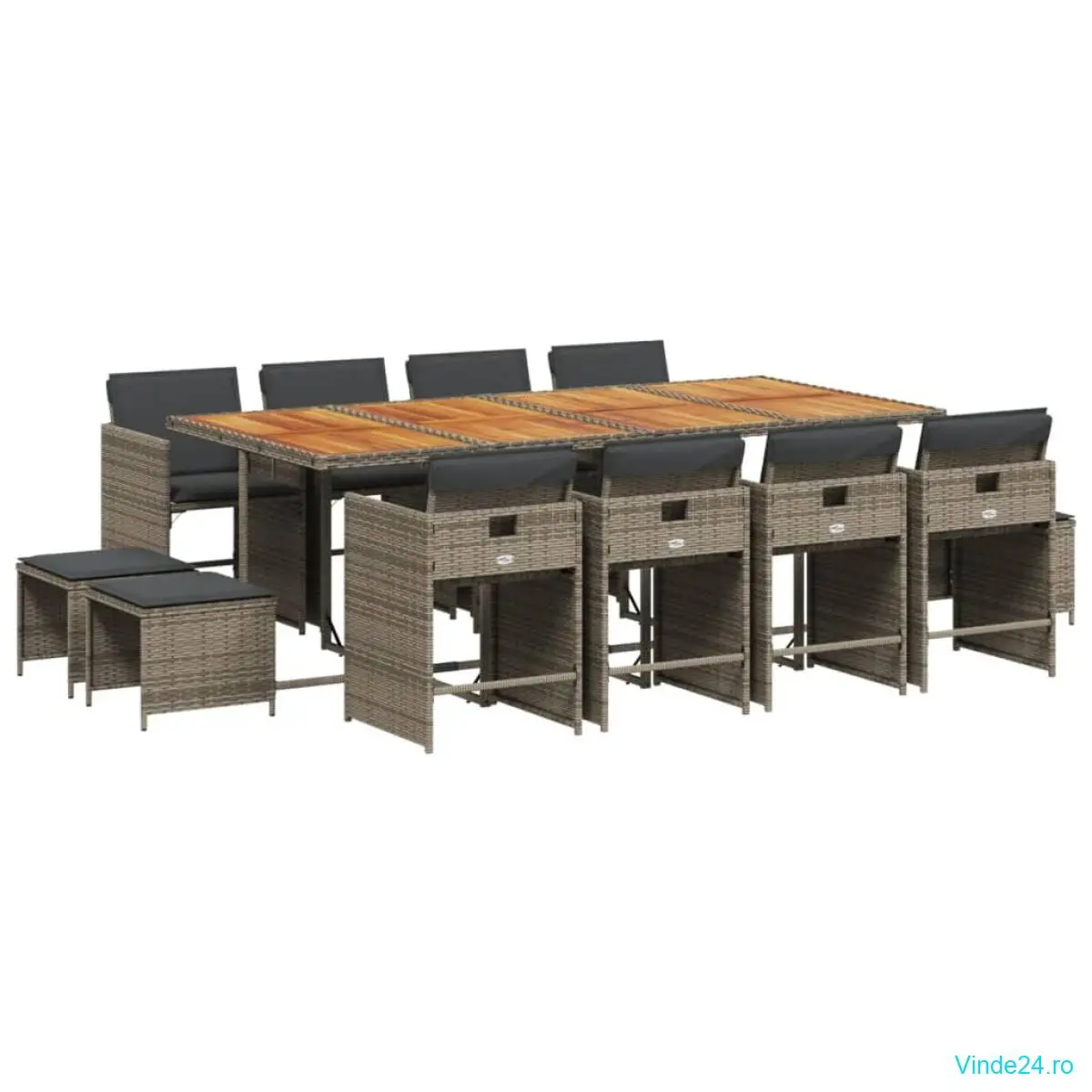 vidaXL Set mobilier de grădină cu perne, 13 piese, gri, poliratan