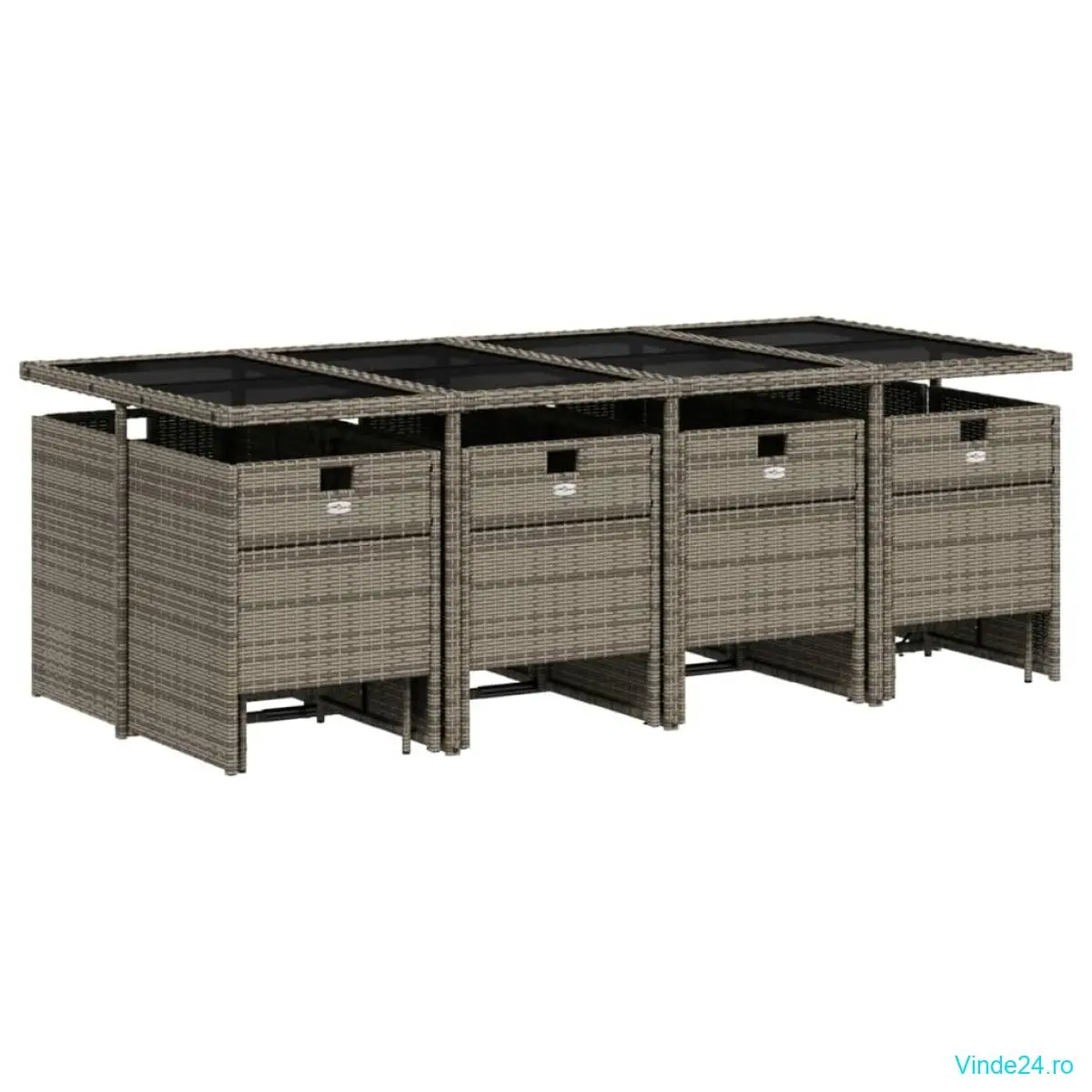 vidaXL Set mobilier de grădină cu perne, 13 piese, gri, poliratan