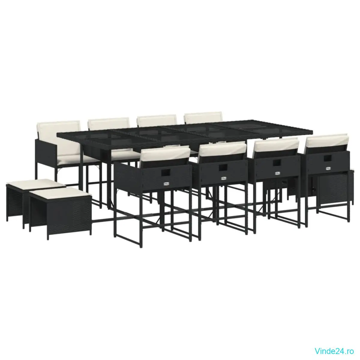 vidaXL Set mobilier de grădină cu perne, 13 piese, negru, poliratan