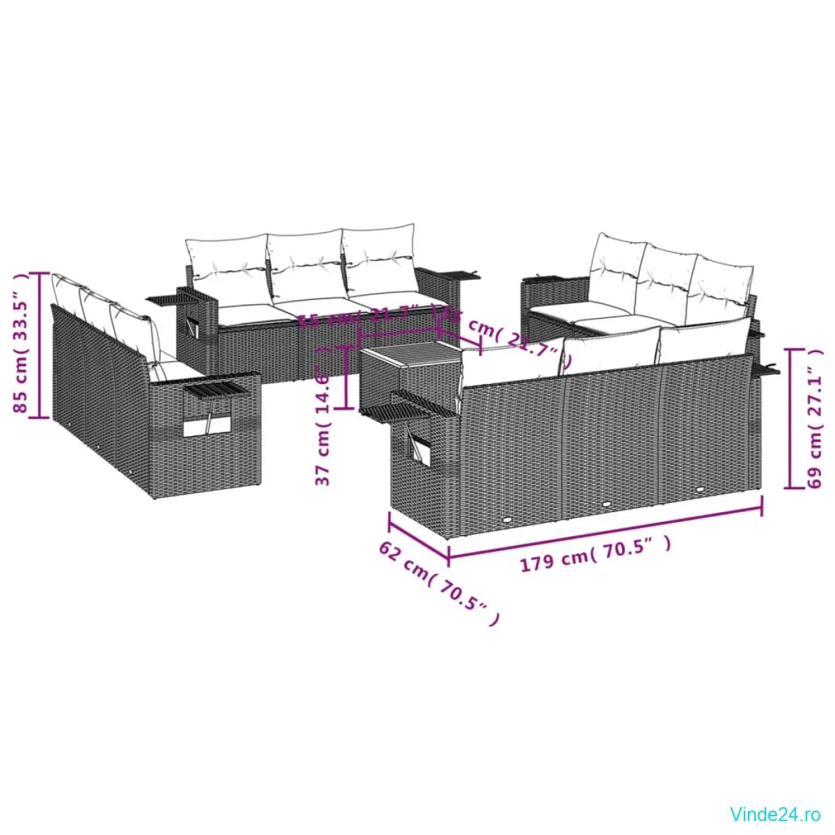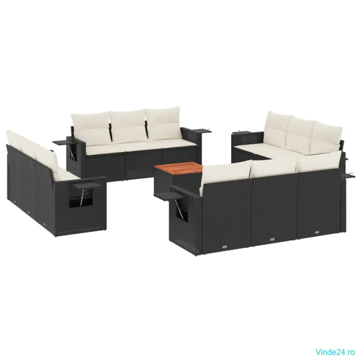vidaXL Set mobilier de grădină cu perne, 13 piese, negru, poliratan