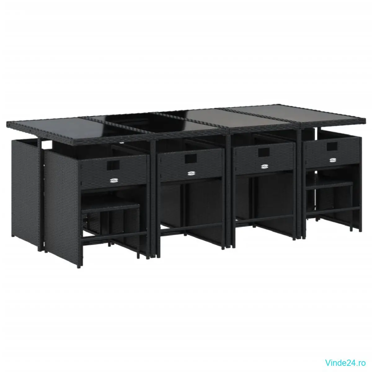 vidaXL Set mobilier de grădină cu perne, 13 piese, negru, poliratan