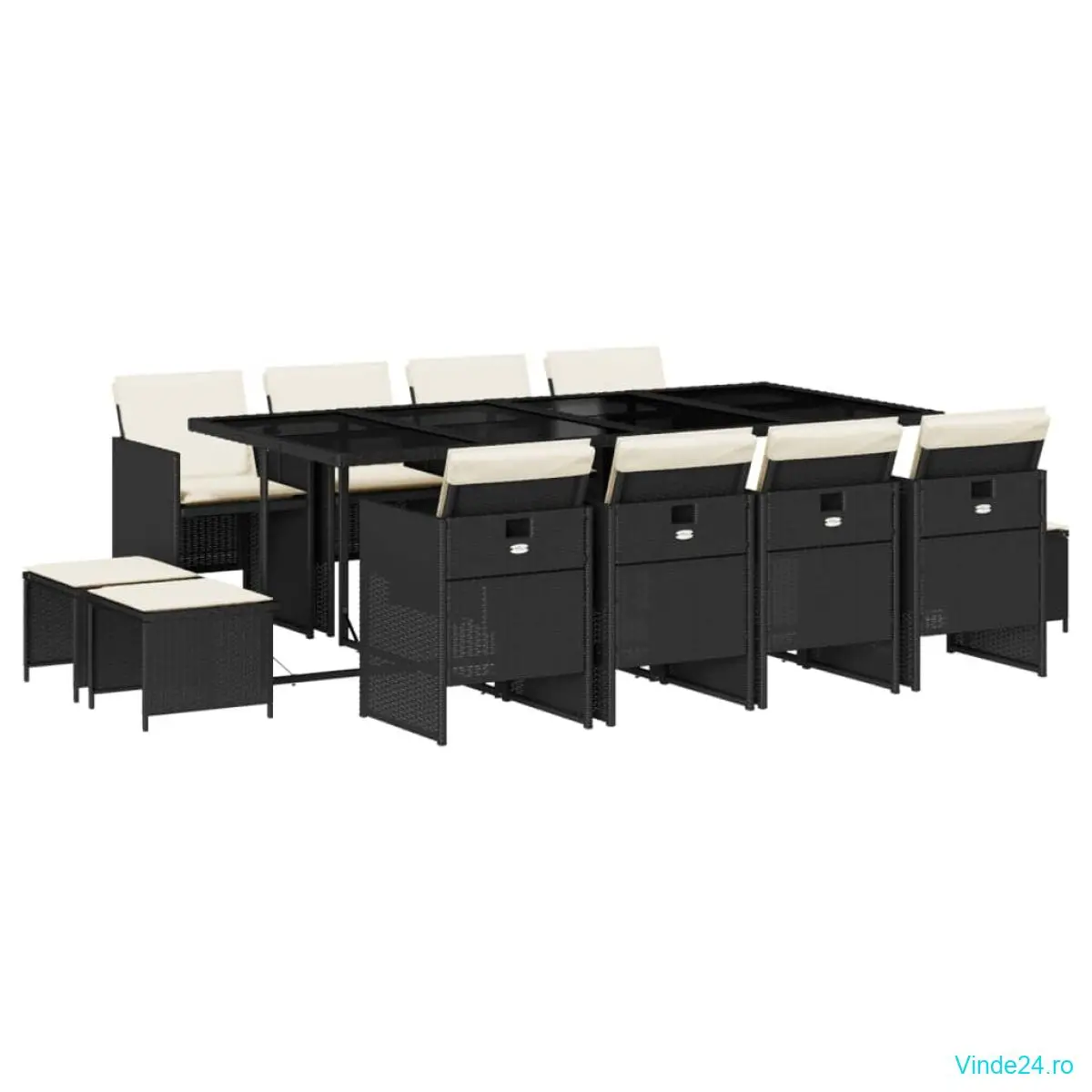 vidaXL Set mobilier de grădină cu perne, 13 piese, negru, poliratan