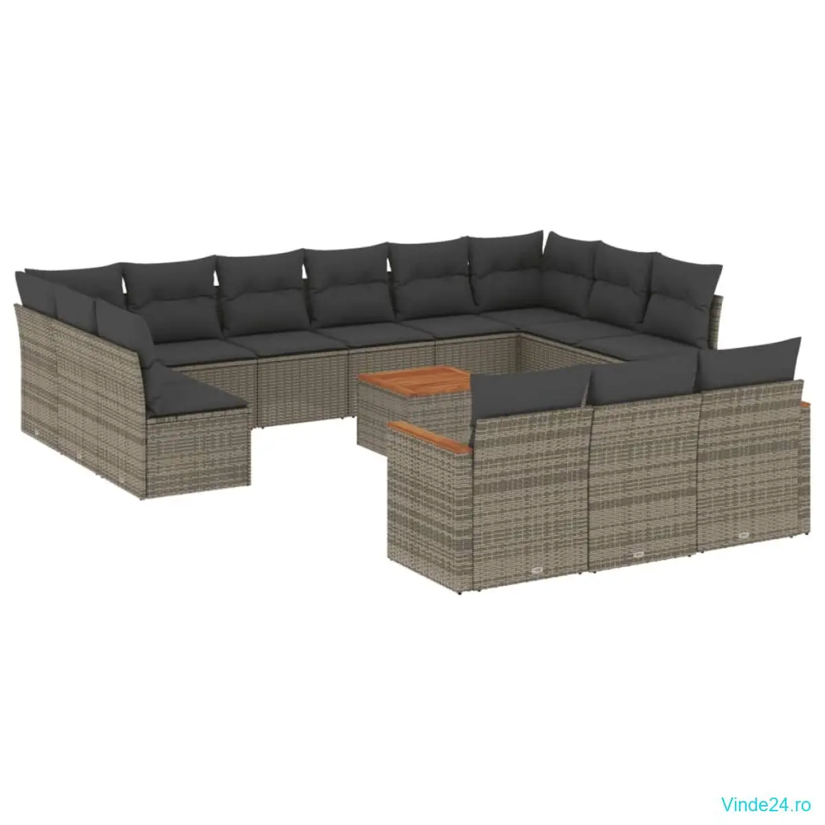 vidaXL Set mobilier de grădină cu perne, 14 piese, gri, poliratan