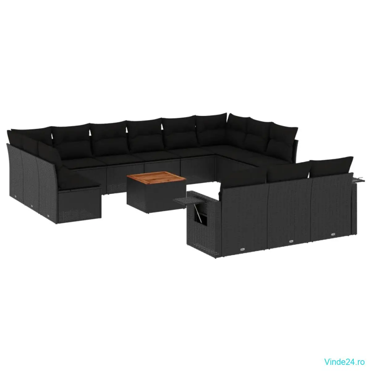 vidaXL Set mobilier de grădină cu perne, 14 piese, negru, poliratan