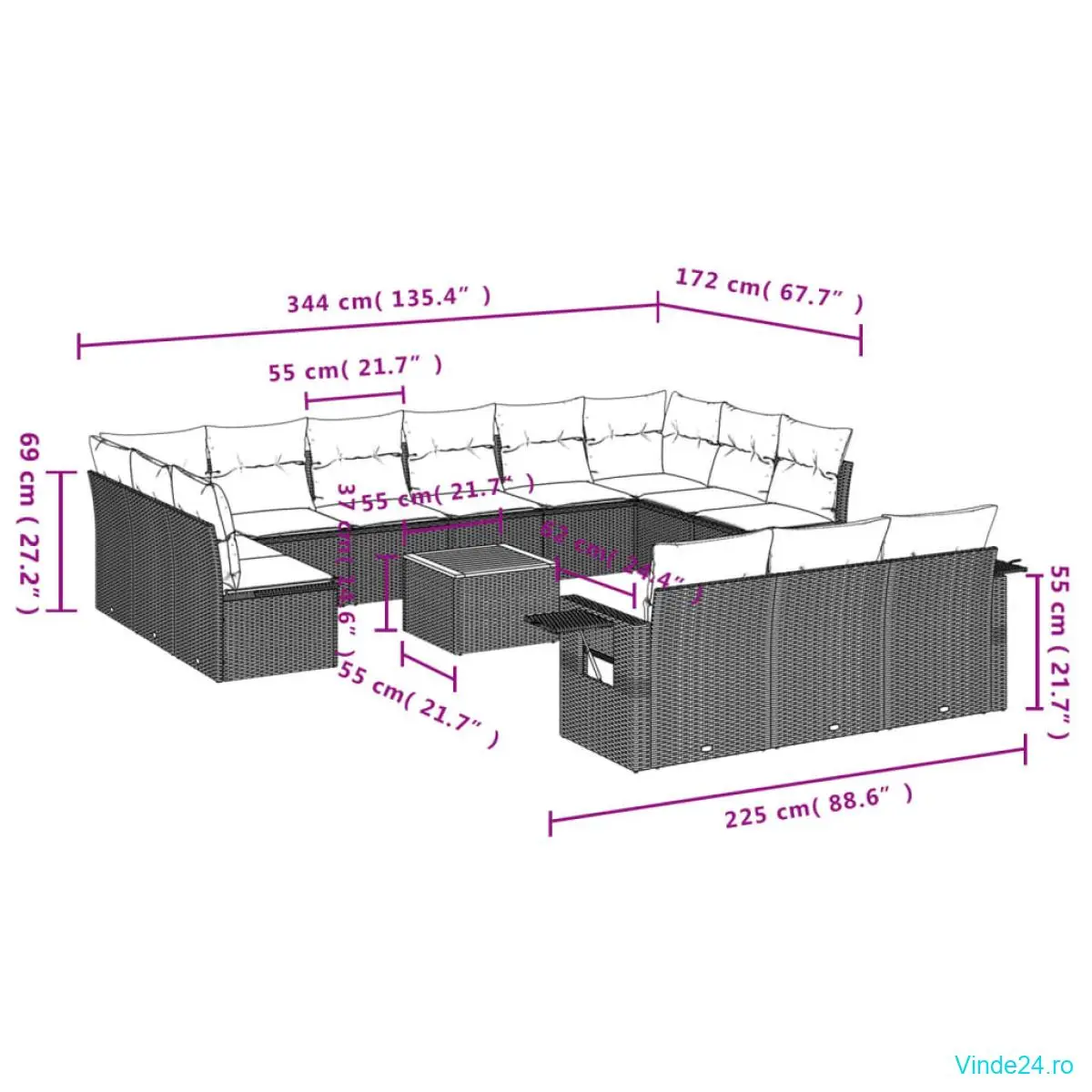 vidaXL Set mobilier de grădină cu perne, 14 piese, negru, poliratan
