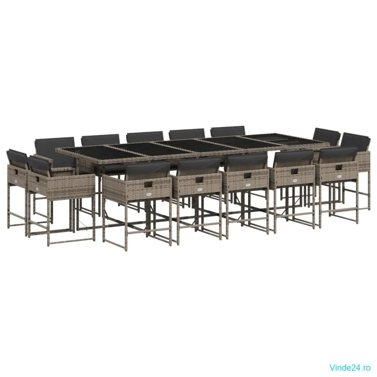 vidaXL Set mobilier de grădină cu perne, 15 piese, gri, poliratan