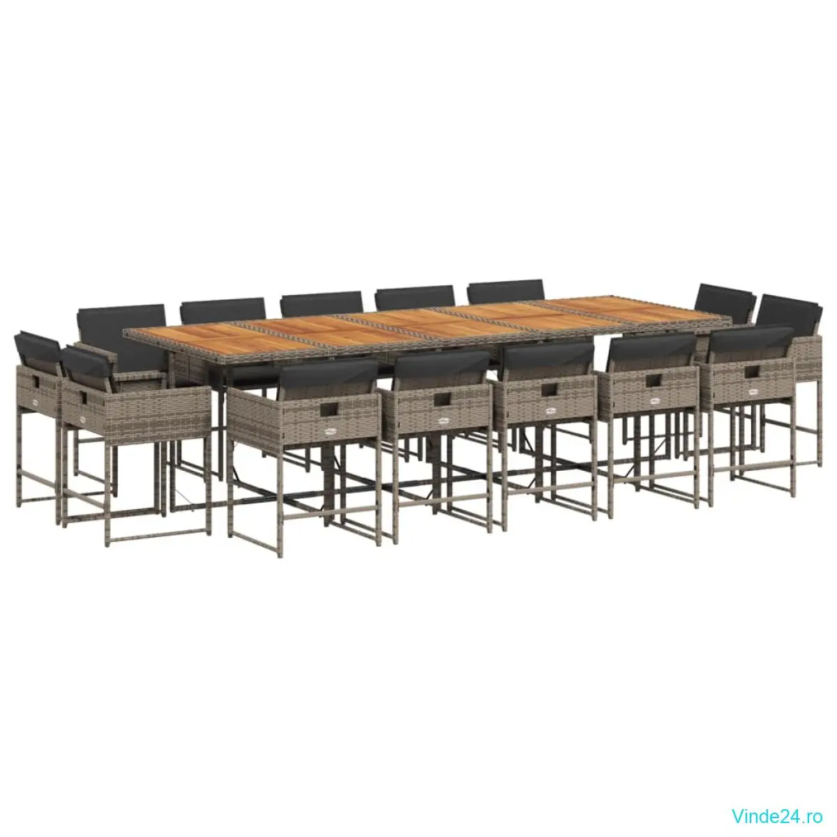vidaXL Set mobilier de grădină cu perne, 15 piese, gri, poliratan