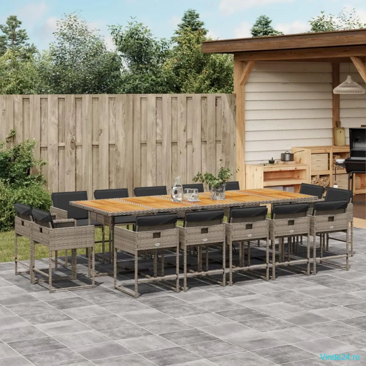 vidaXL Set mobilier de grădină cu perne, 15 piese, gri, poliratan