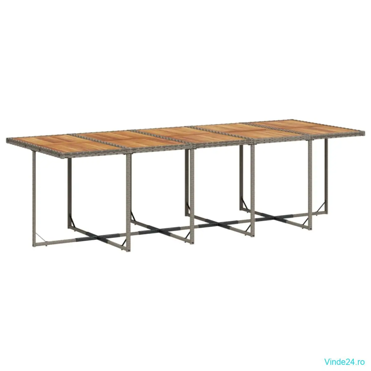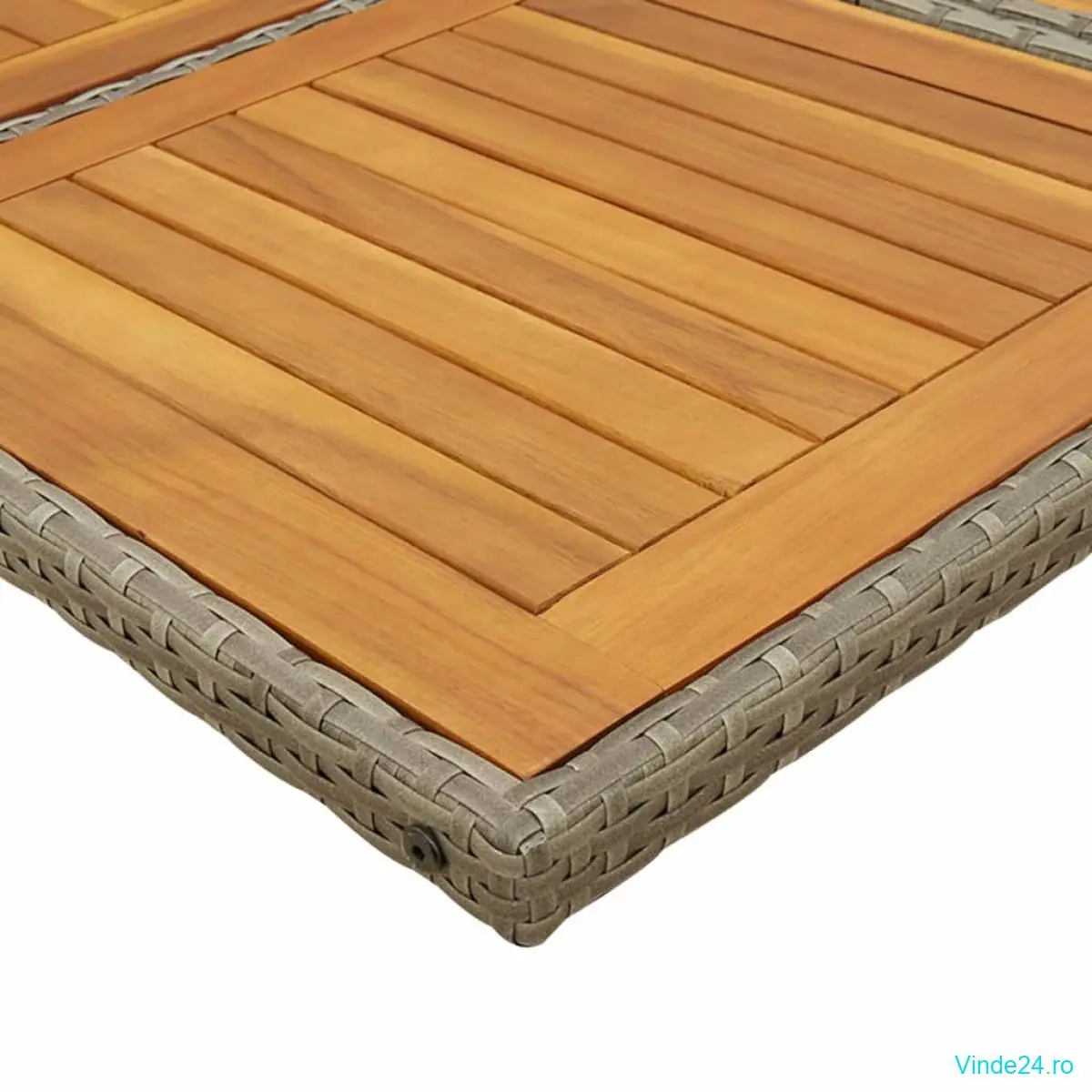 • Material: Ratan PE, oțel vopsit electrostatic, lemn masiv de acacia cu finisaj în ulei
