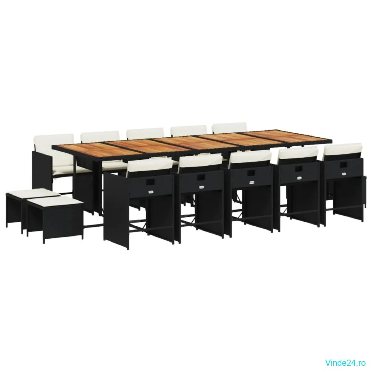 vidaXL Set mobilier de grădină cu perne, 15 piese, negru, poliratan