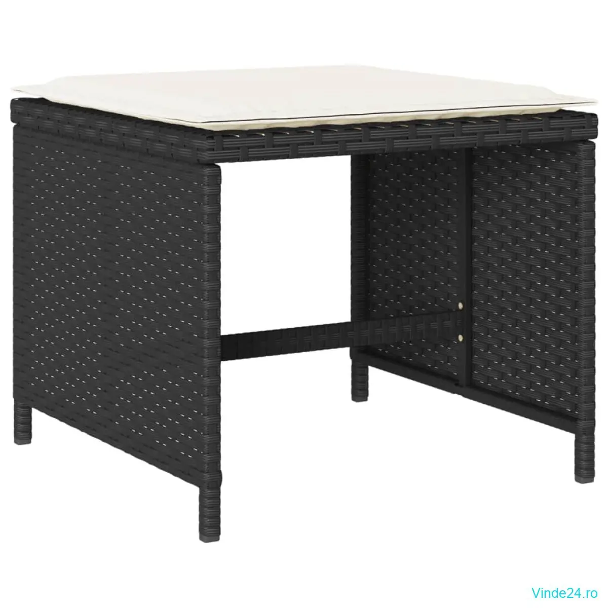 vidaXL Set mobilier de exterior cu perne, 11 piese, negru, poliratan