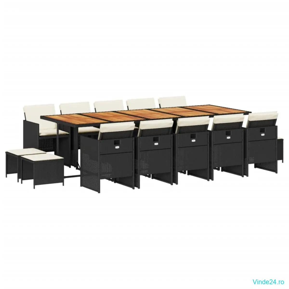 vidaXL Set mobilier de grădină cu perne, 15 piese, negru, poliratan
